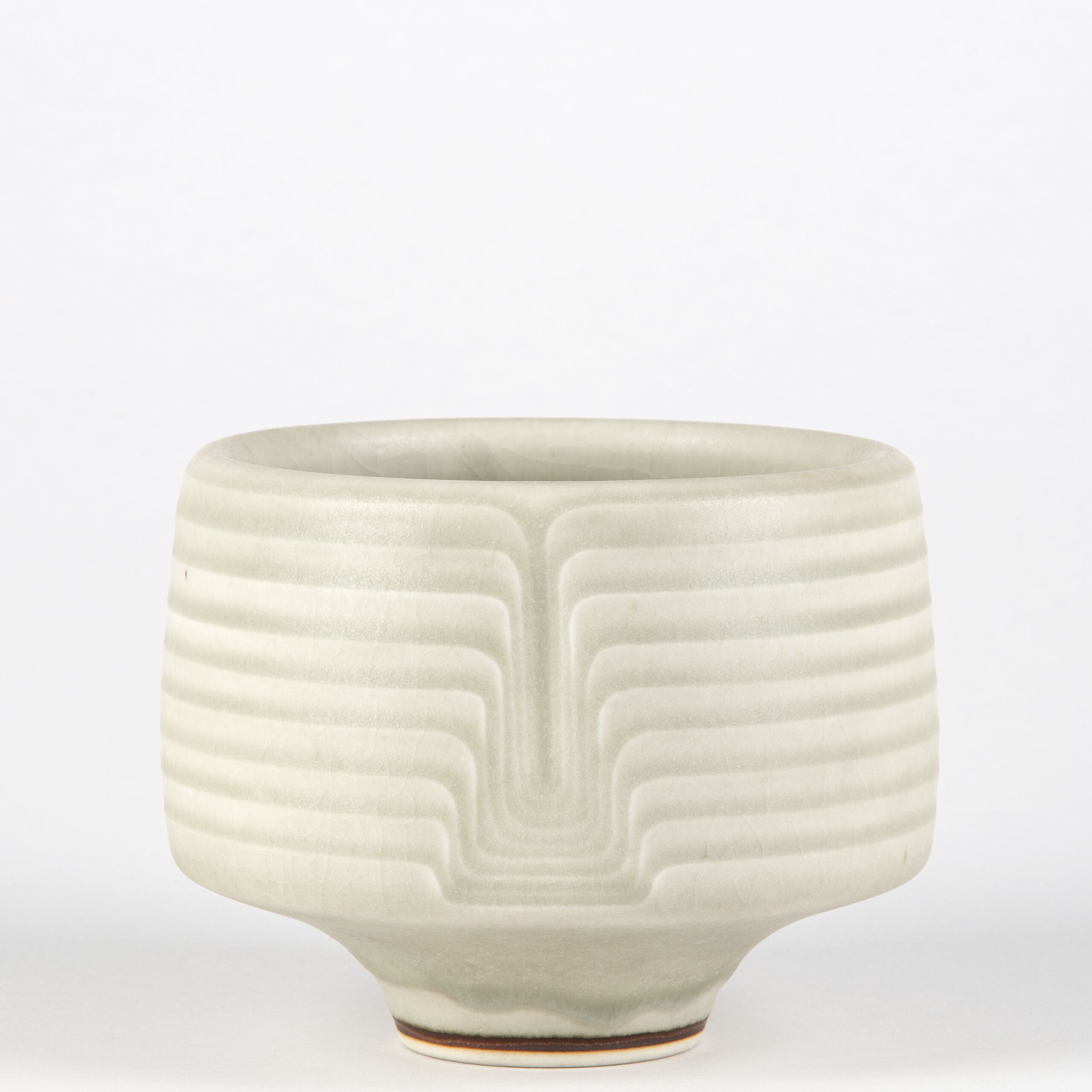 Unikat. Schale mit Reliefdekor, grünlich glasiert