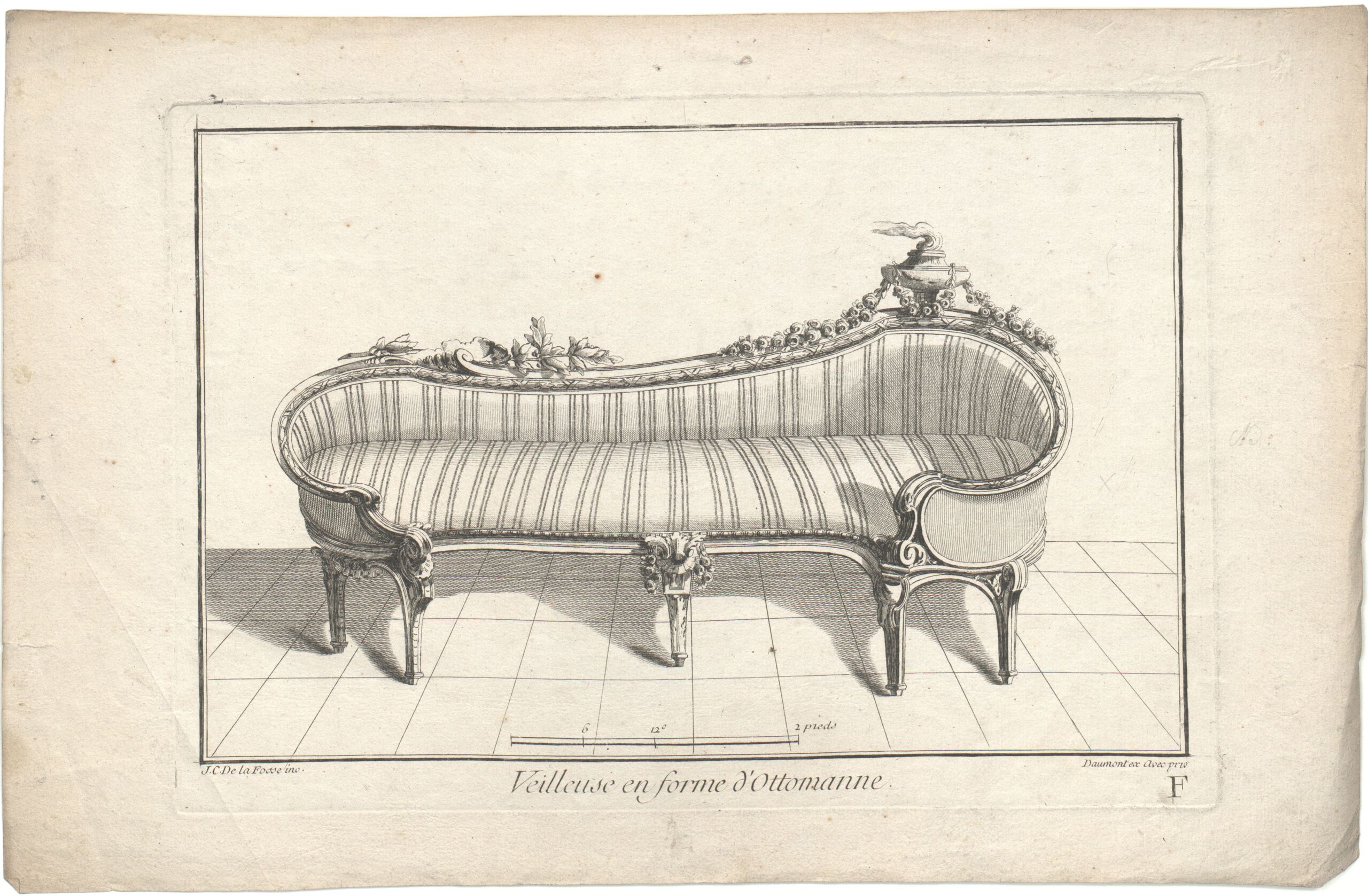 - „Veilleuse en forme d’ Ottomanne.“, Blatt aus der Folge F (Sofas) aus dem Reihenwerk, herausgegeben von Daumont (vom Bearbeiter vergebener Titel)