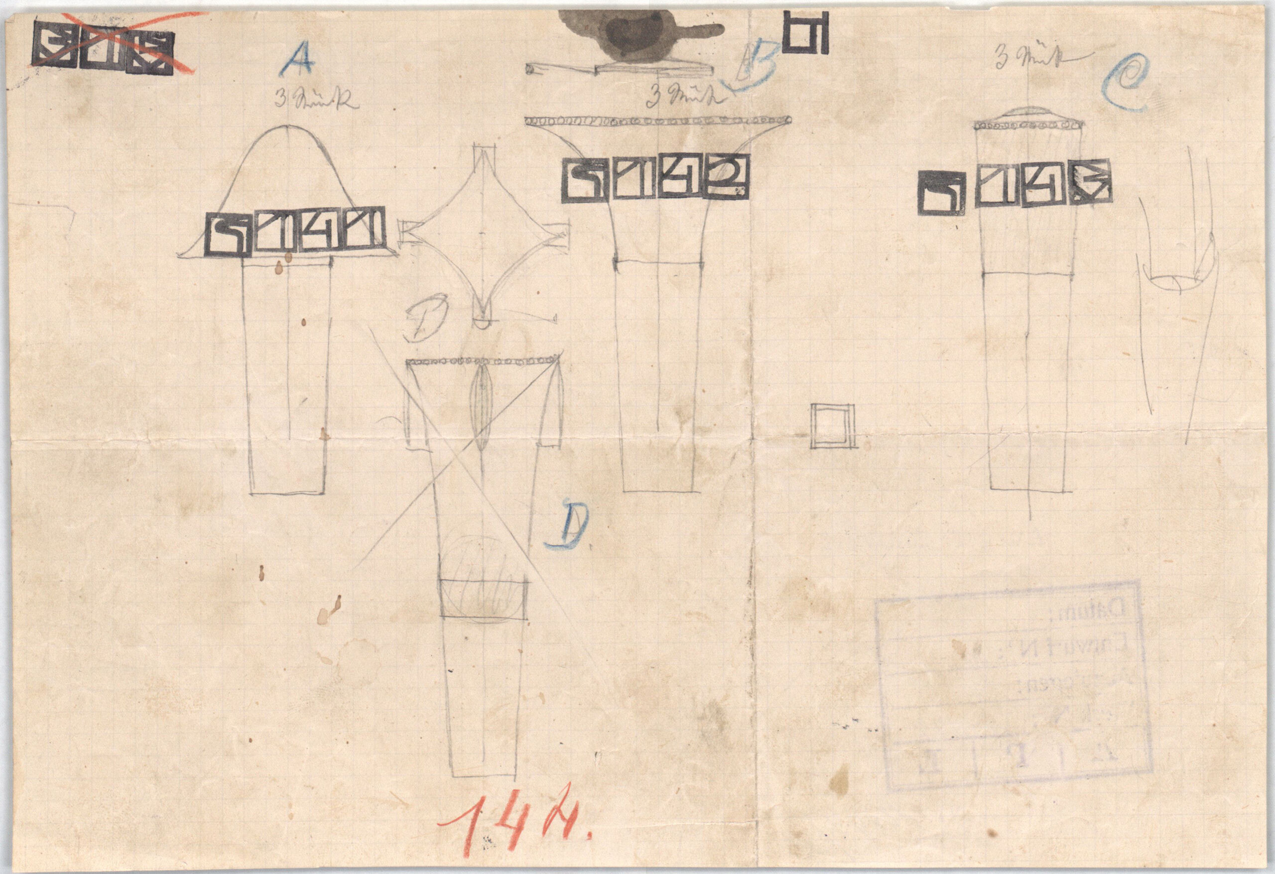 • WW Stempel: “Ausgef. Entwurf” (verso)