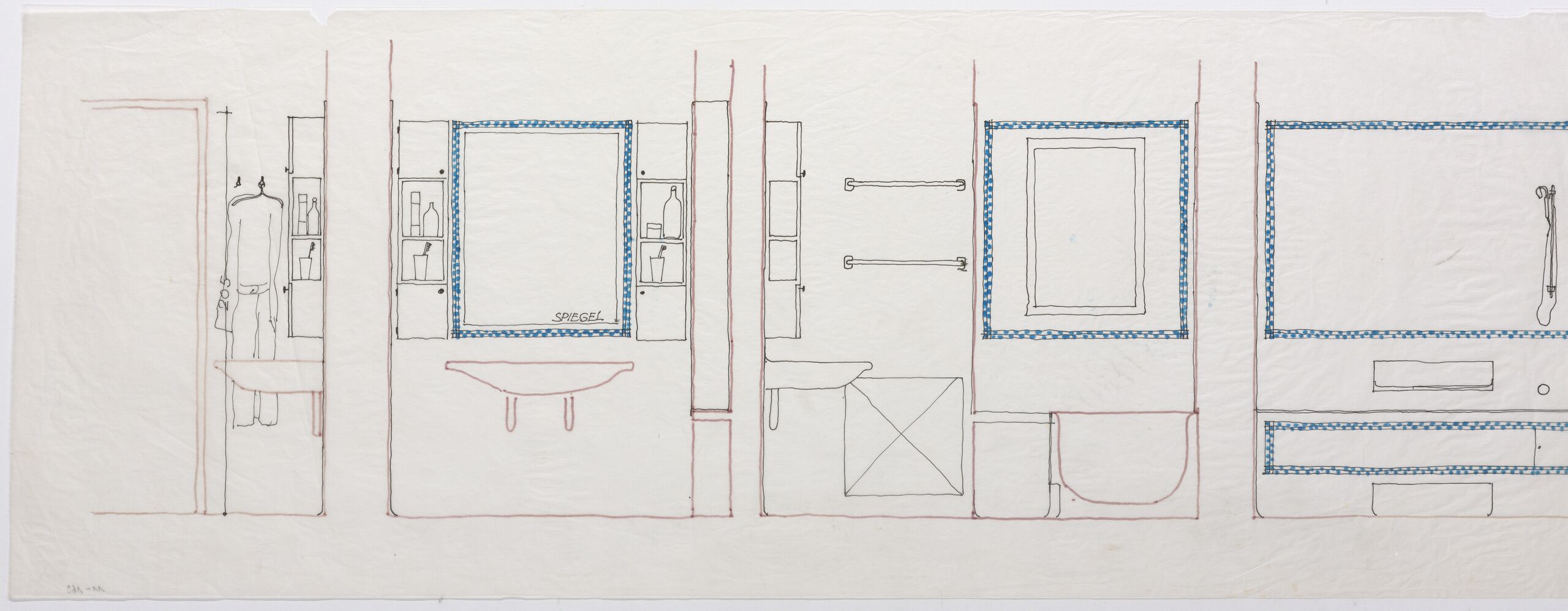- Vier Wandaufrisse des Badezimmers (vom Bearbeiter vergebener Titel)