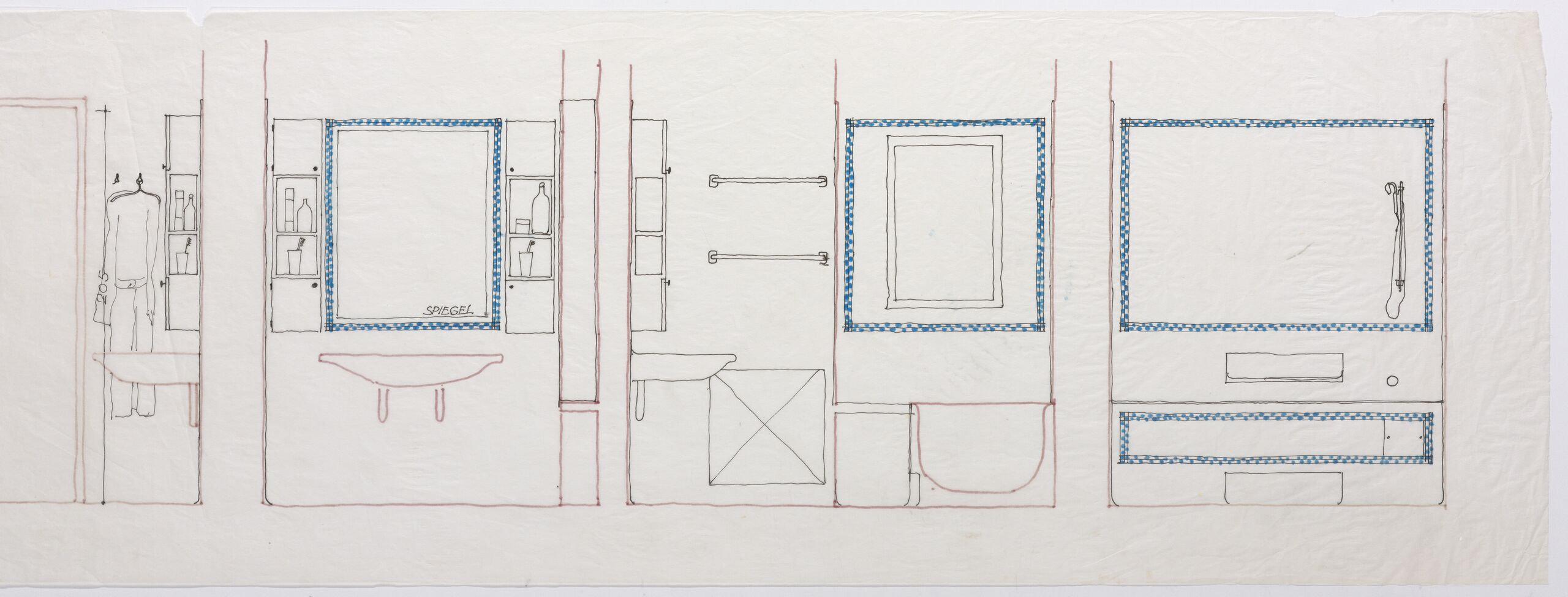 Aufriss, Vier Wandaufrisse des Badezimmers, Anna-Lülja Praun, MAK Inv.nr. KI 16475-11-169
