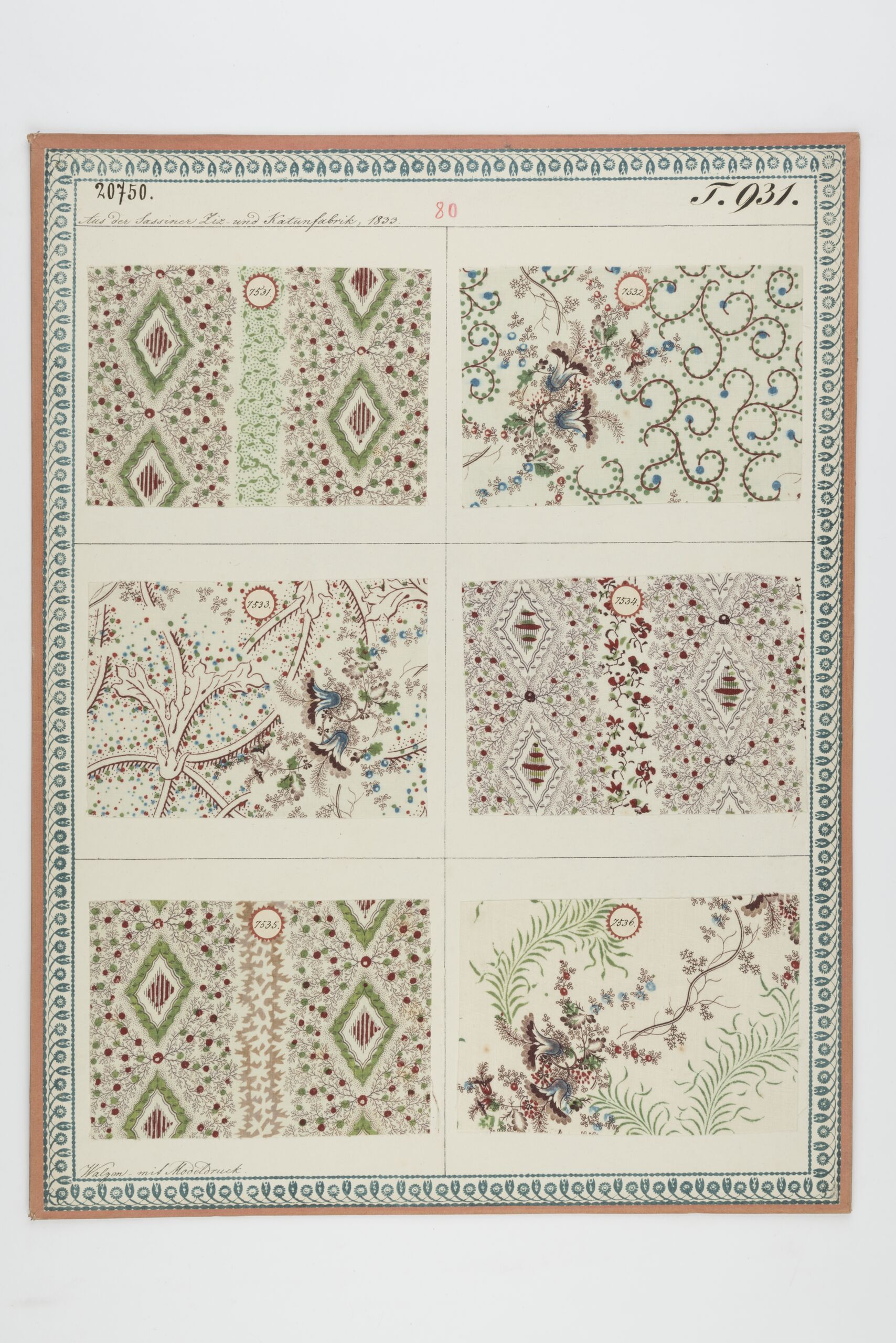 • Mustertafel, Walzen- und Modeldrucke, Karl von Puthon, MAK Inv.nr. TGM 20750