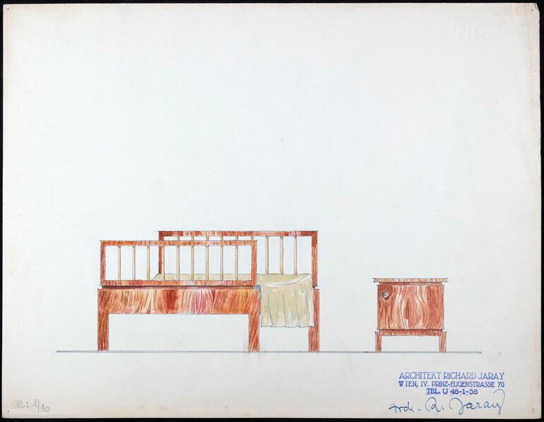 - Stempel (rechts unten) : ARCHITEKT RICHARD JARAY/ WIEN, IV. PRINZ=EUGENSTRASSE 70/ TEL. U 48-1-58