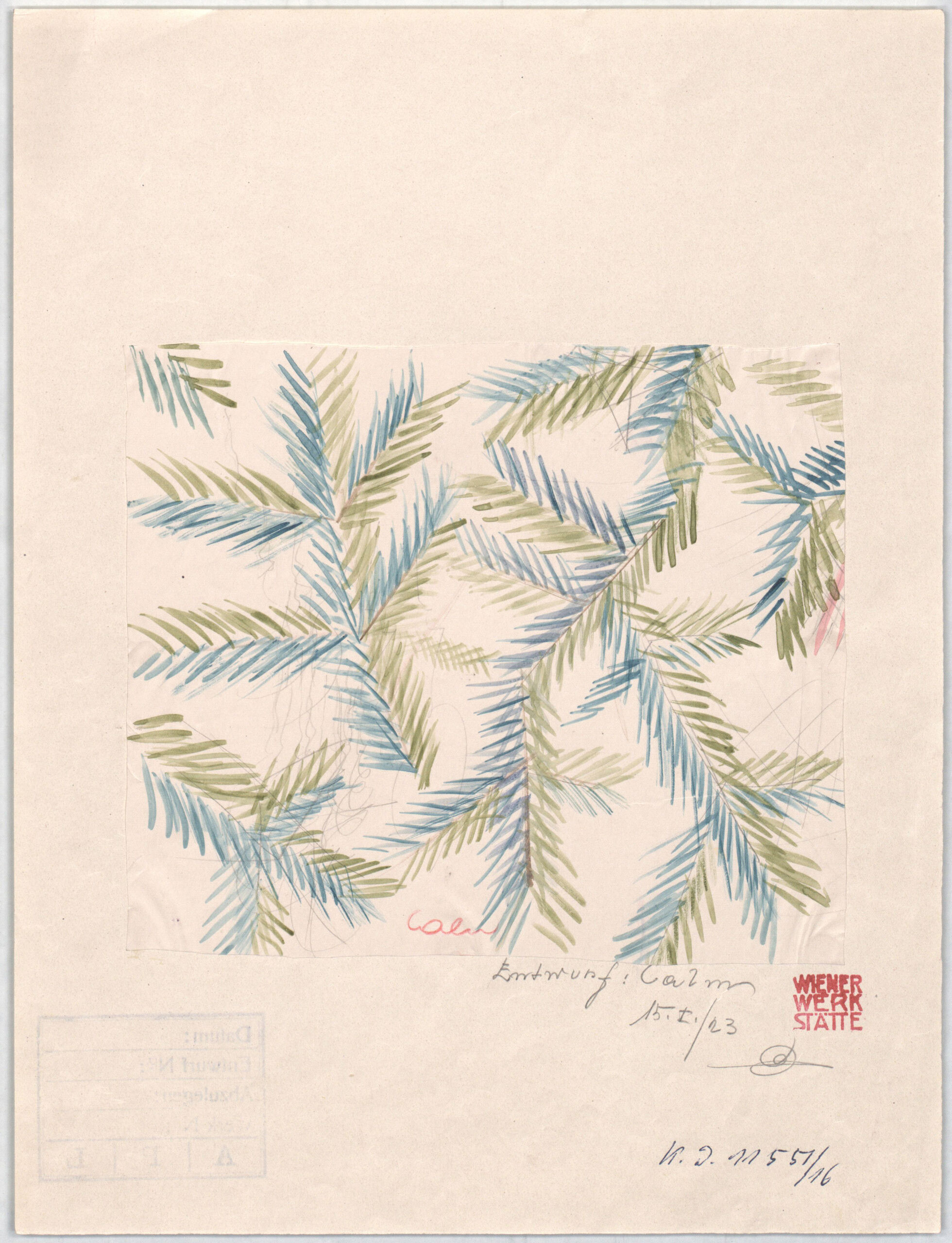 - Text am Objekt: CalmEntwurf: Calm15.I./22. (Paraphe) Hermann Baer
