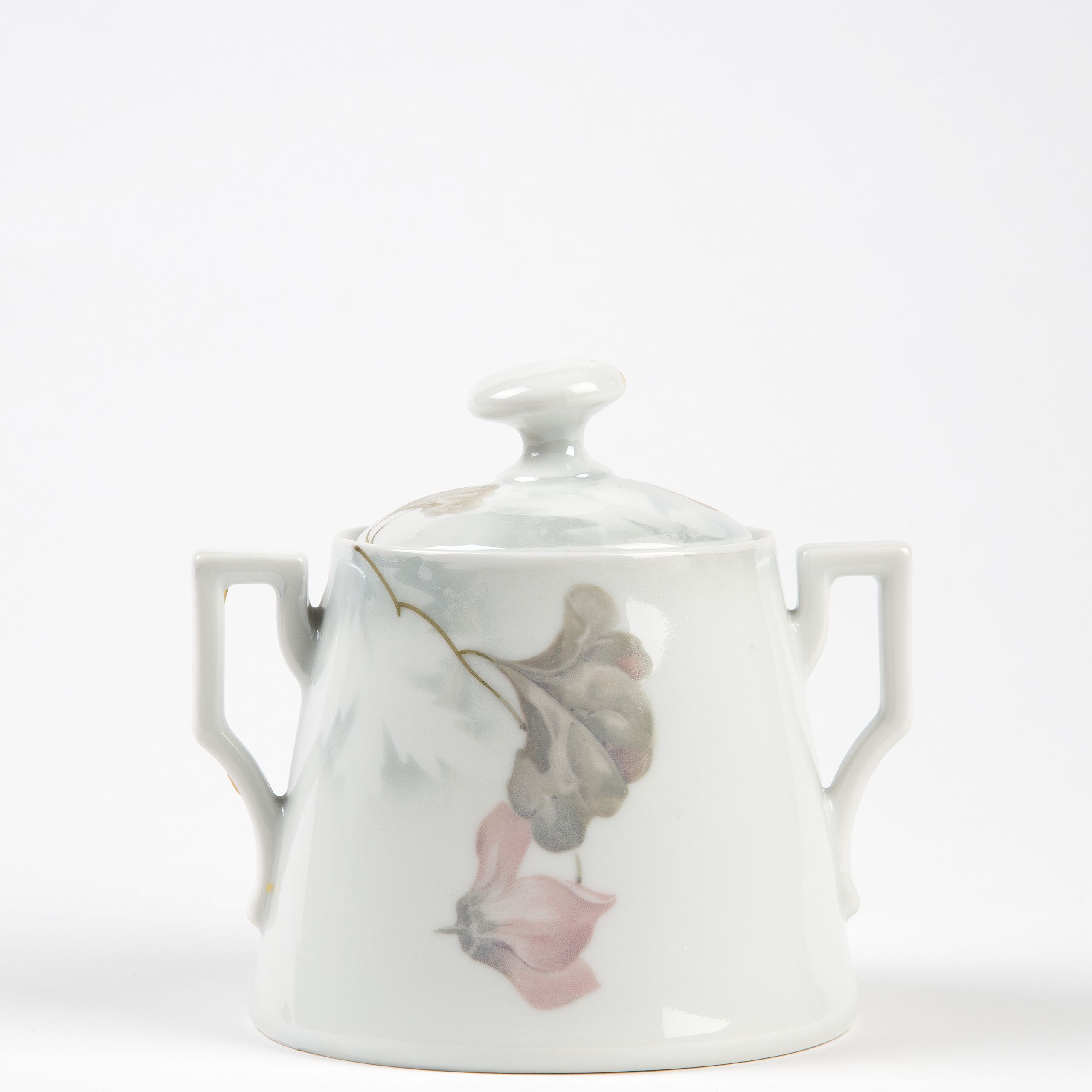 weiß mit buntem floralem Dekor (Zyklamen)
