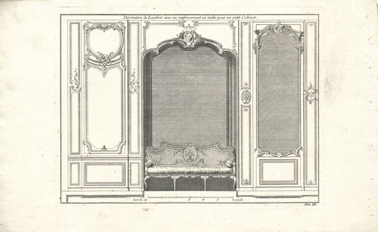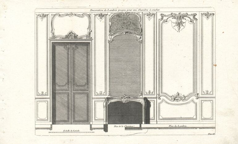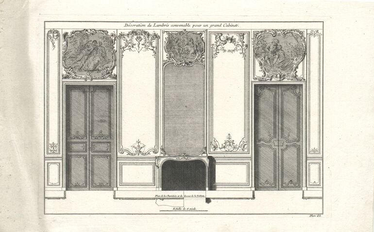 - Text am Objekt: Couronnement de Cheminee varie de deux facons, convenable pour une Gallerie. / Couronnem.t de Cheminee varie de deux facons convenable pour une Chambre de parade. / Plan 7 / Plan 8