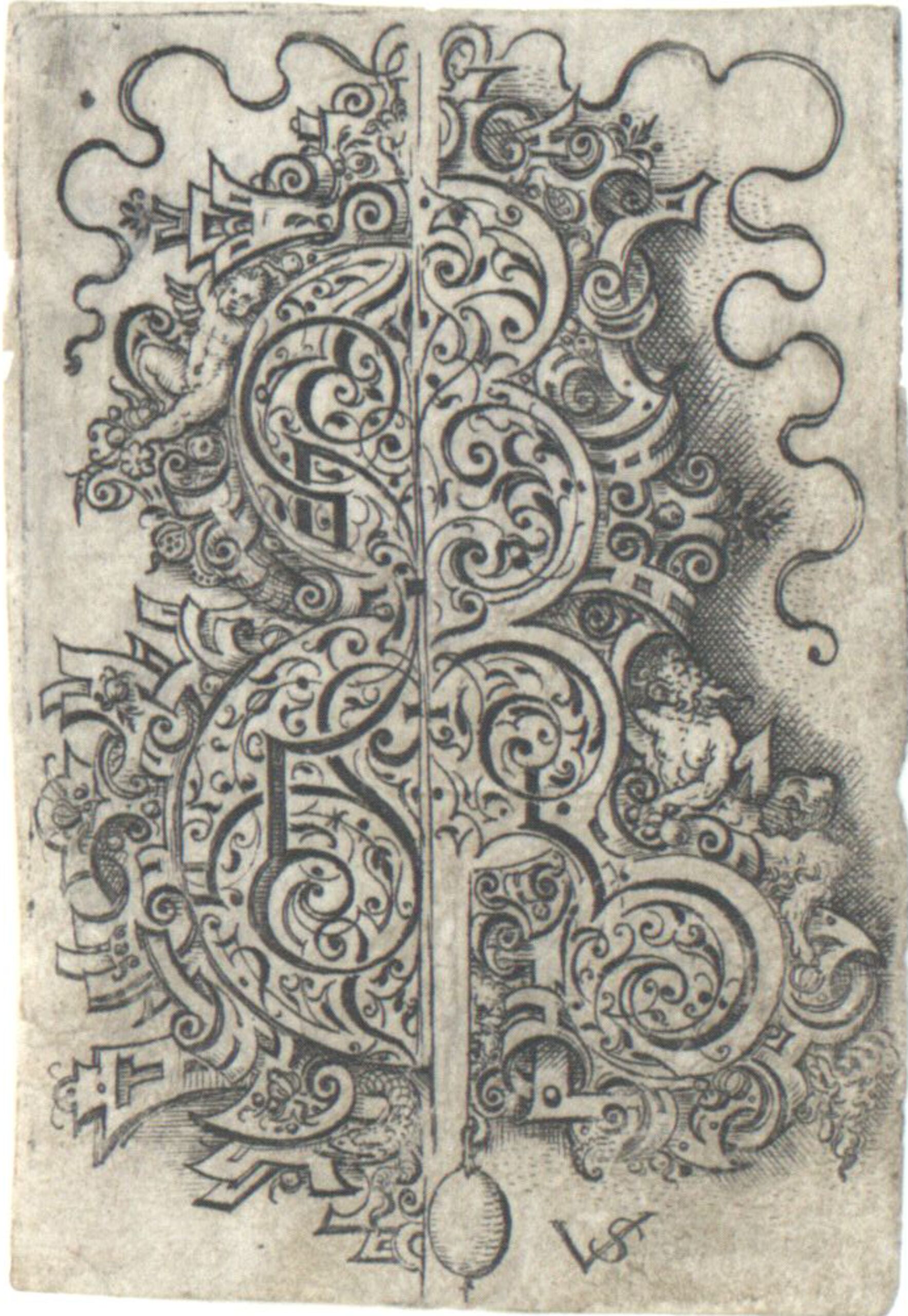 - Zwei Hälften eines Anhängers, links ein Putto, rechts ein Satyr, Blatt aus einer Folge von Goldschmiedearbeiten (vom Bearbeiter vergebener Titel)