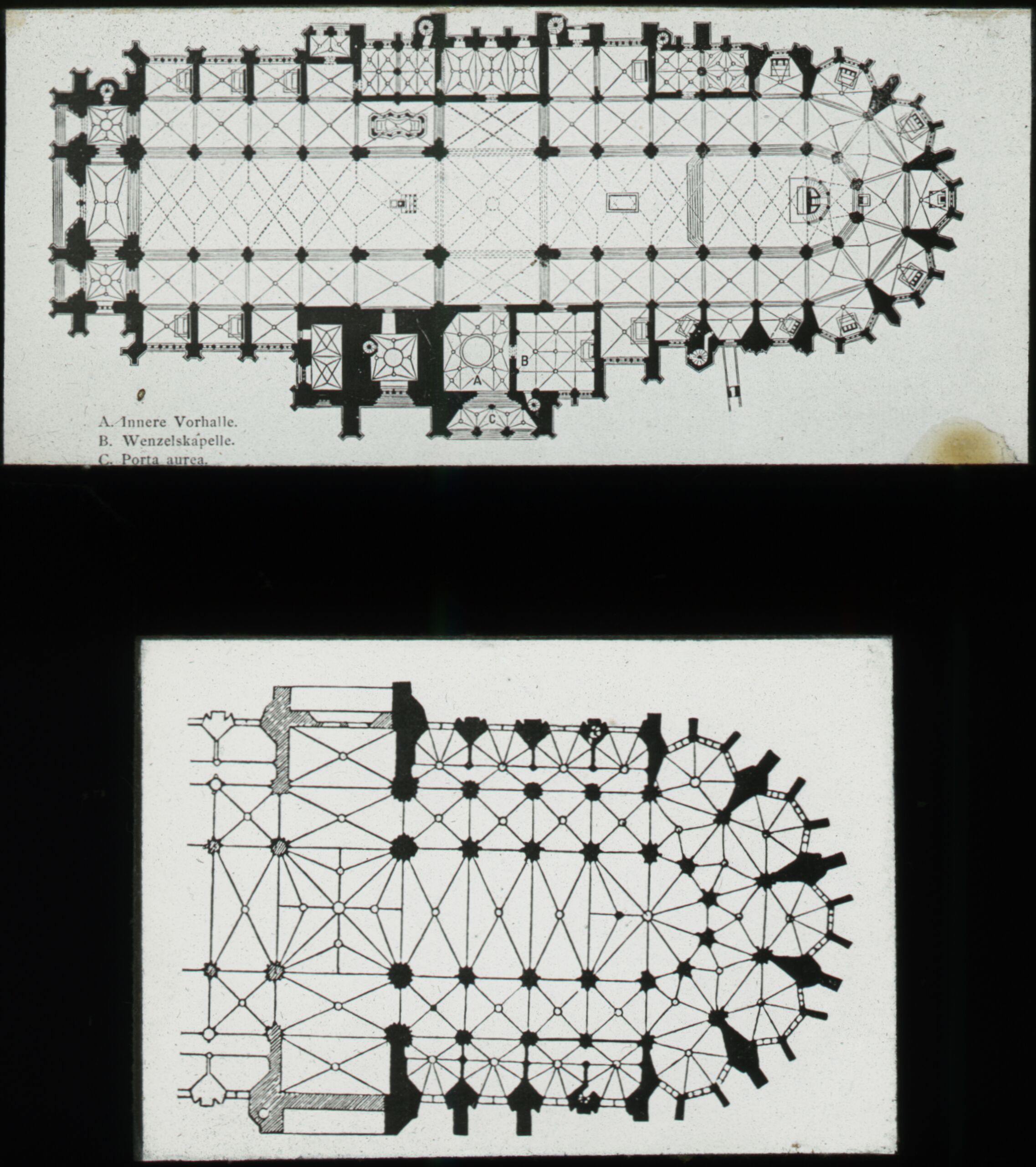 Diapositiv, Zwei Kirchengrundrisse, Bruno Reiffenstein, MAK Inv.nr. LI 9293