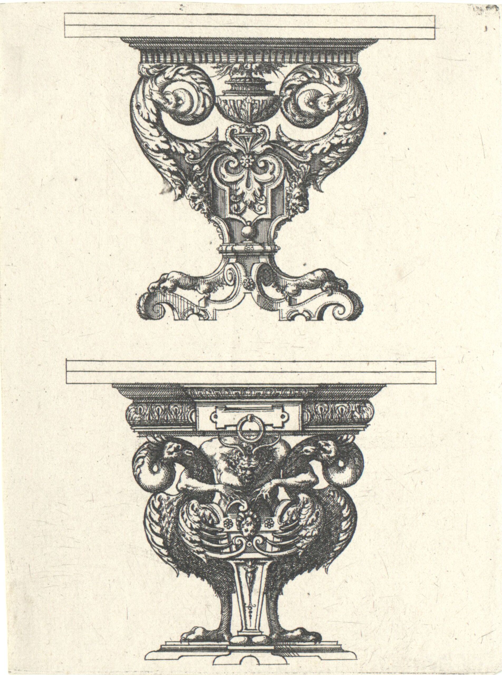 Ornamentstich, Zwei Tische, Blatt aus der Folge von Möbeln und Verwandtem, Jacques Androuet du Cerceau, MAK Inv.nr. KI 2273-6