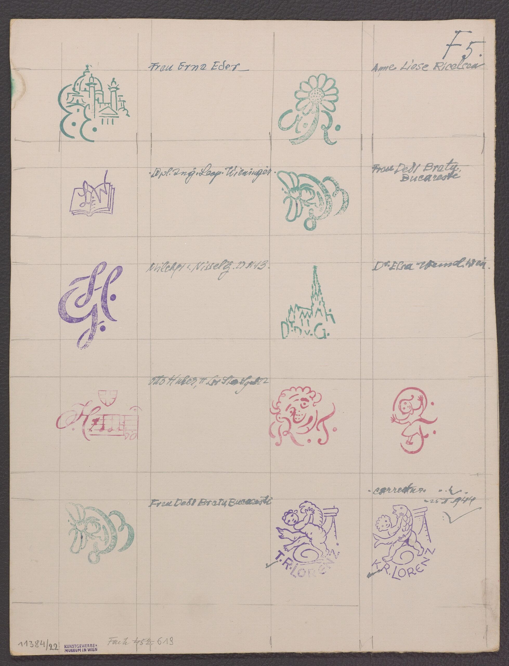 - text on object: Frau Erna Eder / Anne Liese Ricelsen / Dipl. Ing. Leop. Wieninger / (...)