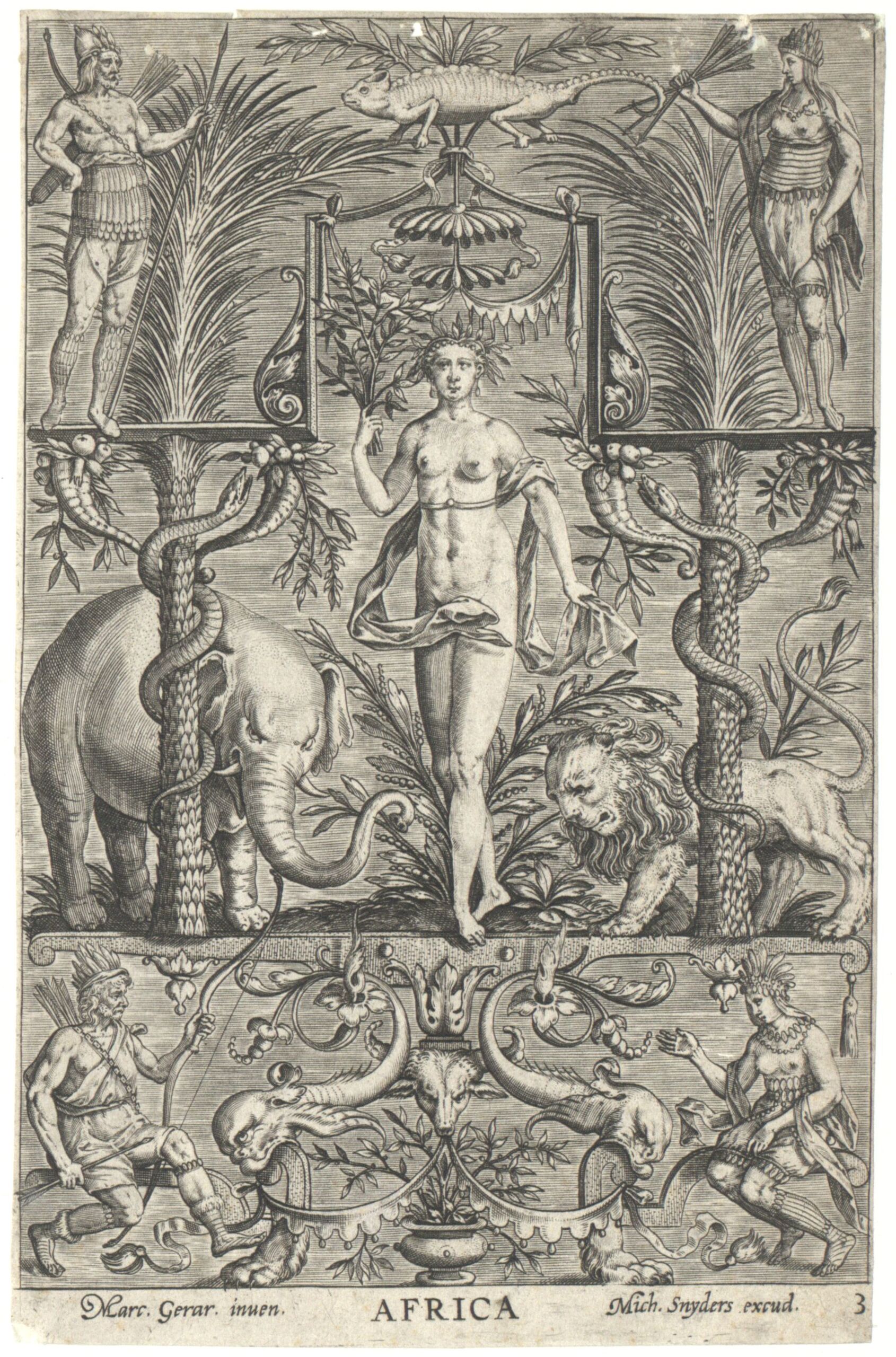 - text on object: AFRICA / Marc. Gerar. inven., Mich. Snyders excud. / 3
