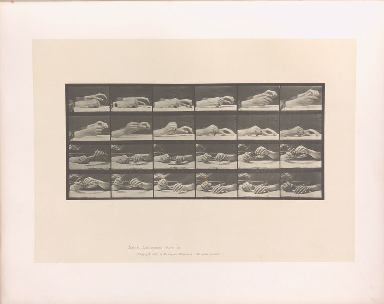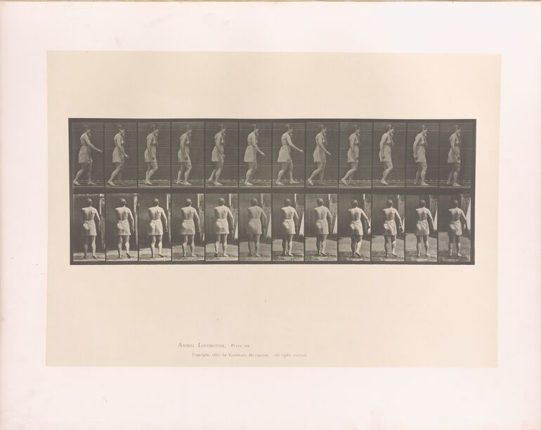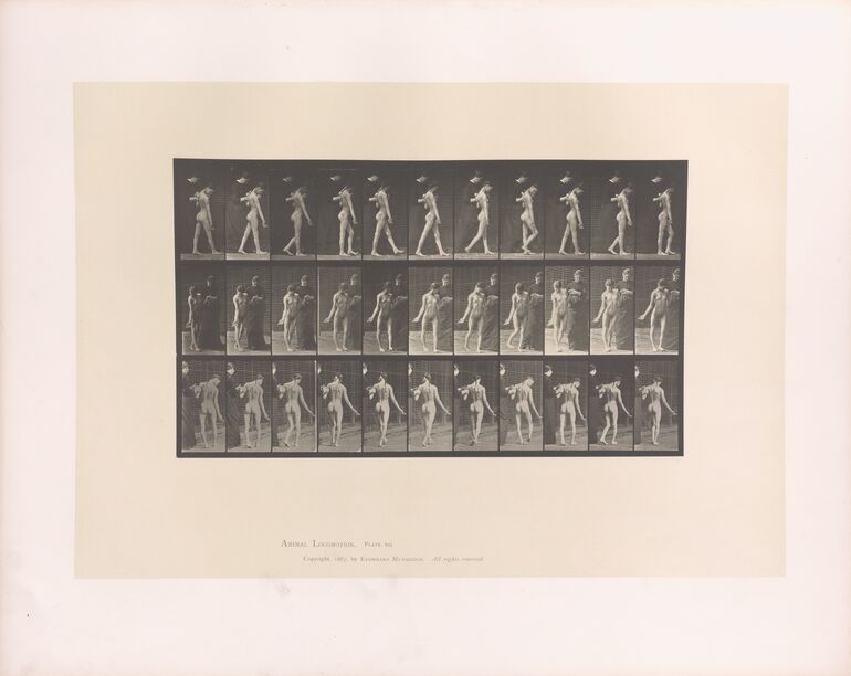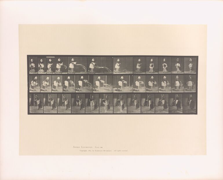 - text on object: Animal Locomotion. Plate 362. / Copyright 1887, by Eadweard Muybridge. All rights reserved