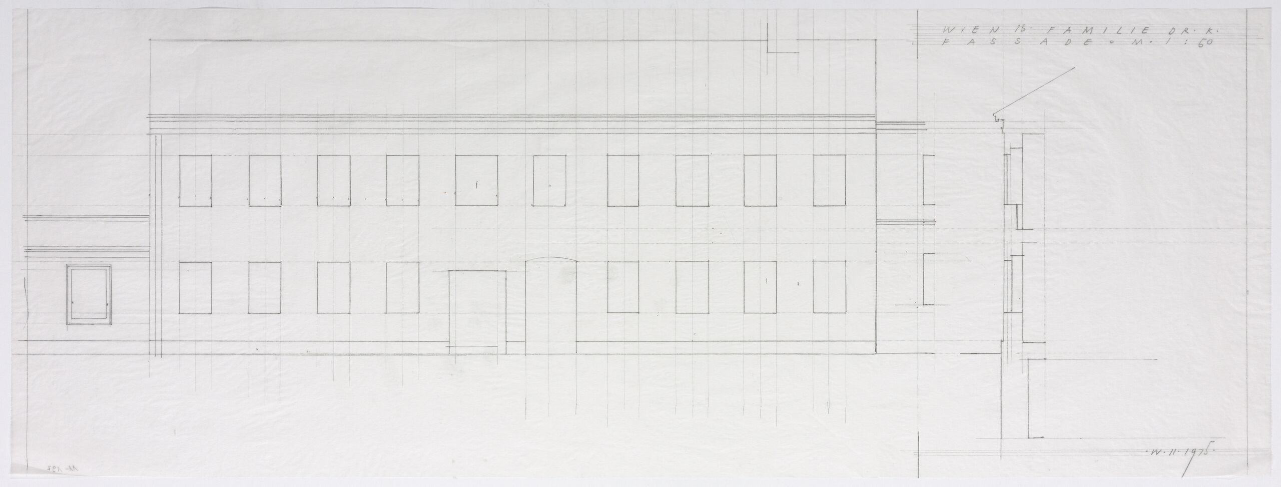 - text on object (rechts oben) : WIEN 13 FAMILIE DR K / FASSADE M 1:50