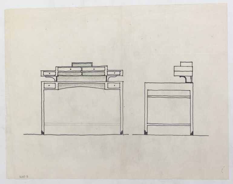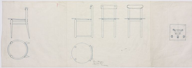 sketch, Aufriss der Stiege, Querschnitte des Handlaufs, Anna-Lülja Praun, MAK Inv.nr. KI 16475-11-538