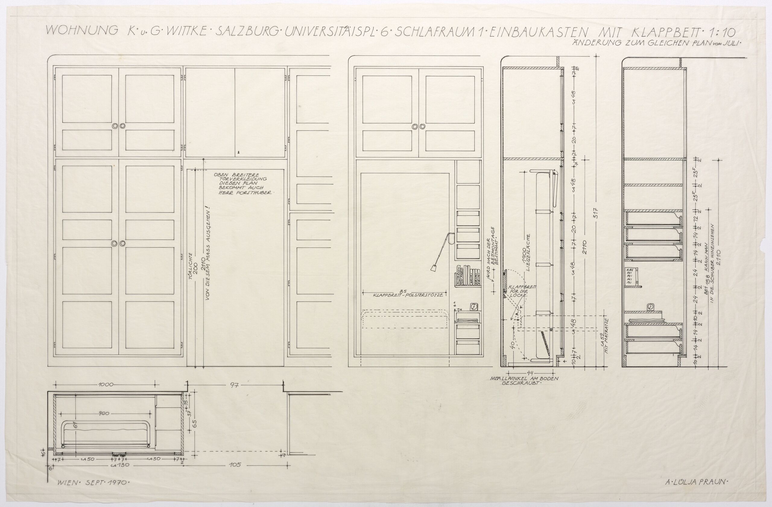 - Wohnung K. u. G. Wittke, Salzburg, Universitätspl. 6, Schlafraum 1, Einbaukasten mit Klappbett, 1:10 (original-language title)