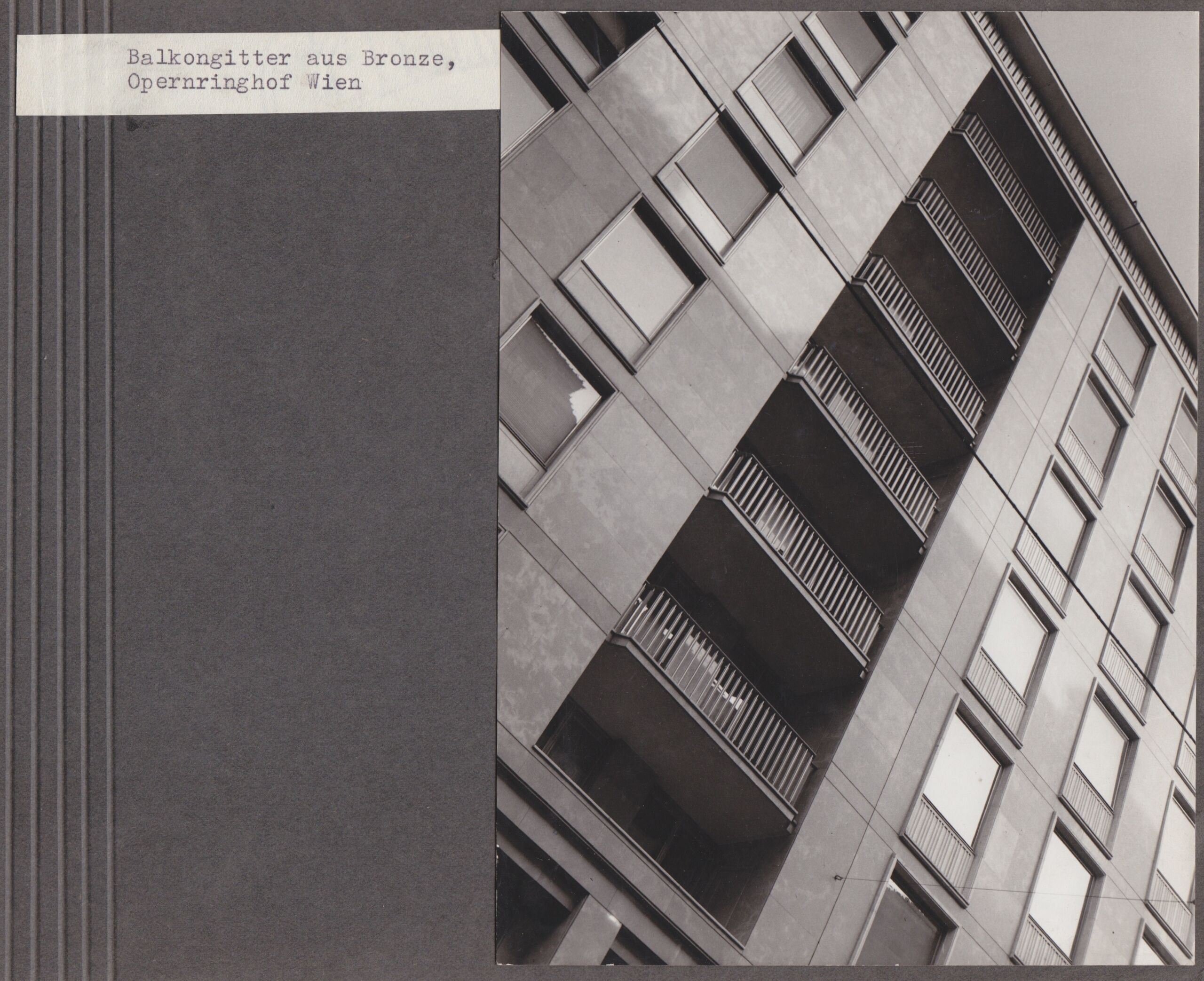 photograph, Balkongeländer, Außenfassade, Opernringhof, Elisabethstraße 2-6, 1010 Wien (Architekten: Carl Appel, Georg Lippert, Alfred Obiditsch, 1955-1957), Werkstätte Hagenauer, MAK Inv.nr. HAF 2308