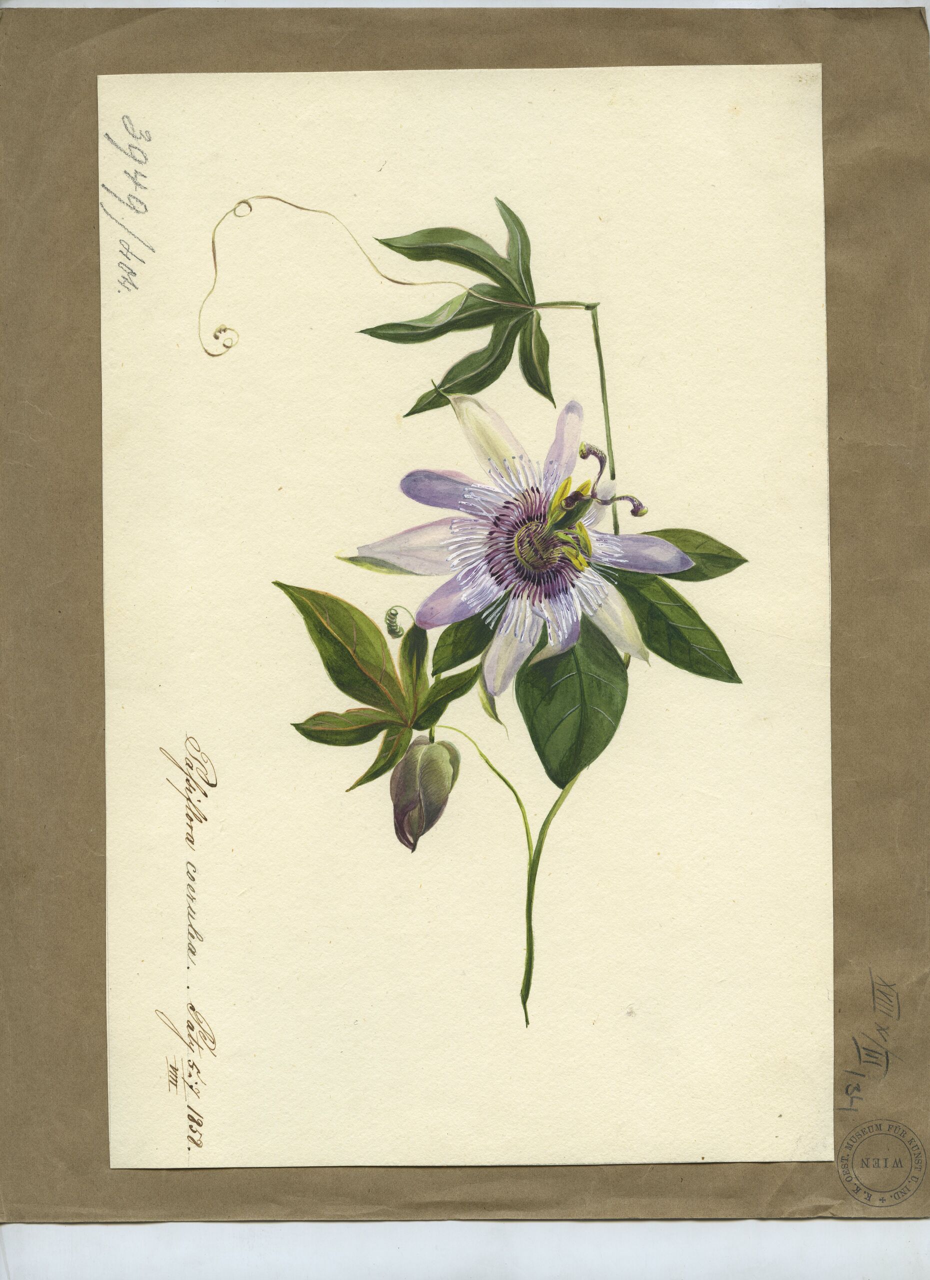 - text on object: Passiflora coerulea Paty 5 u 7/VIII 1858 [Feder in Braun]