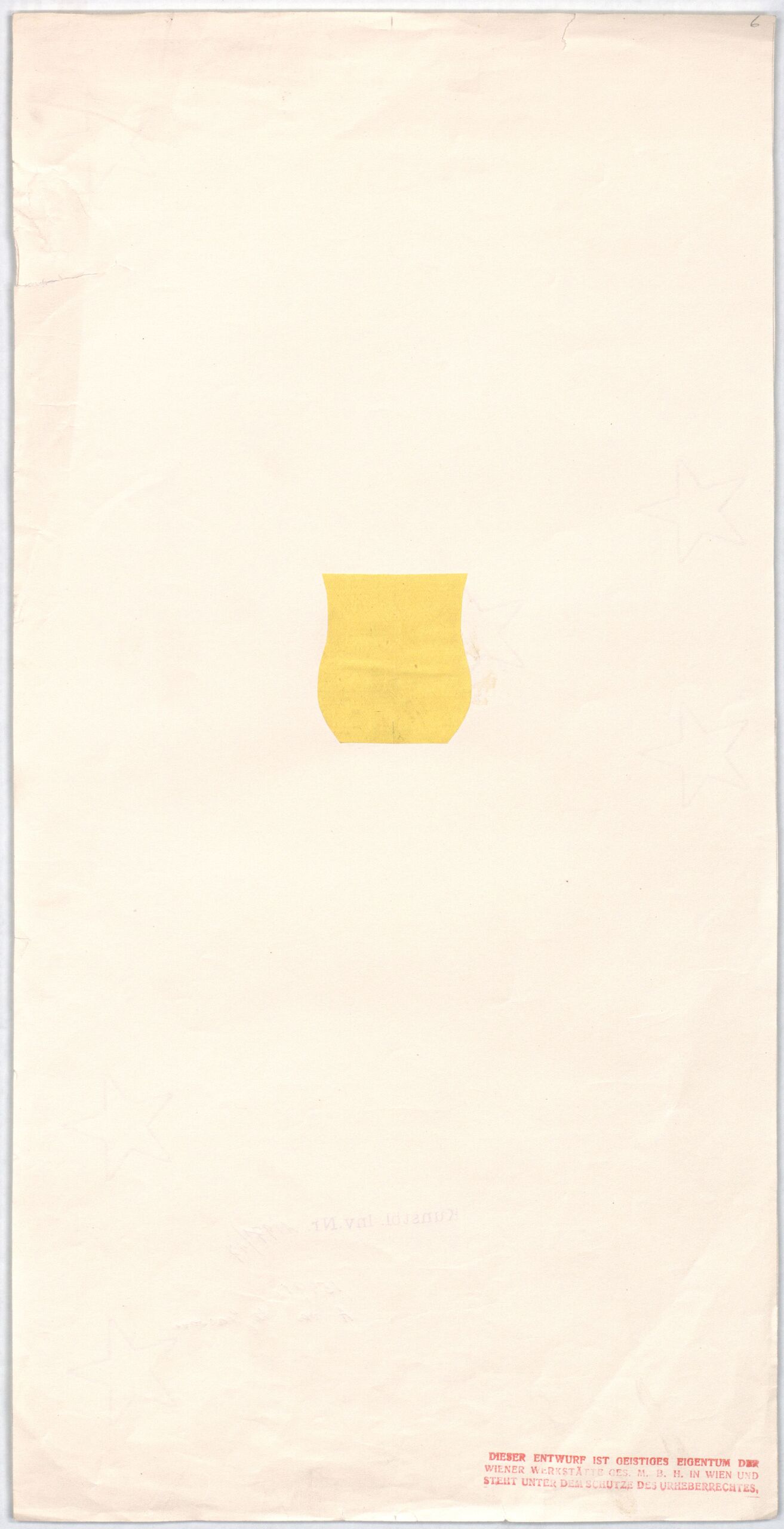 - WW Stempel: Dieser Entwurf ist geistiges Eigentum der Wiener Werkstätte Ges.m.b.H. in Wien und steht unter dem Schutze des Urheberrechtes
