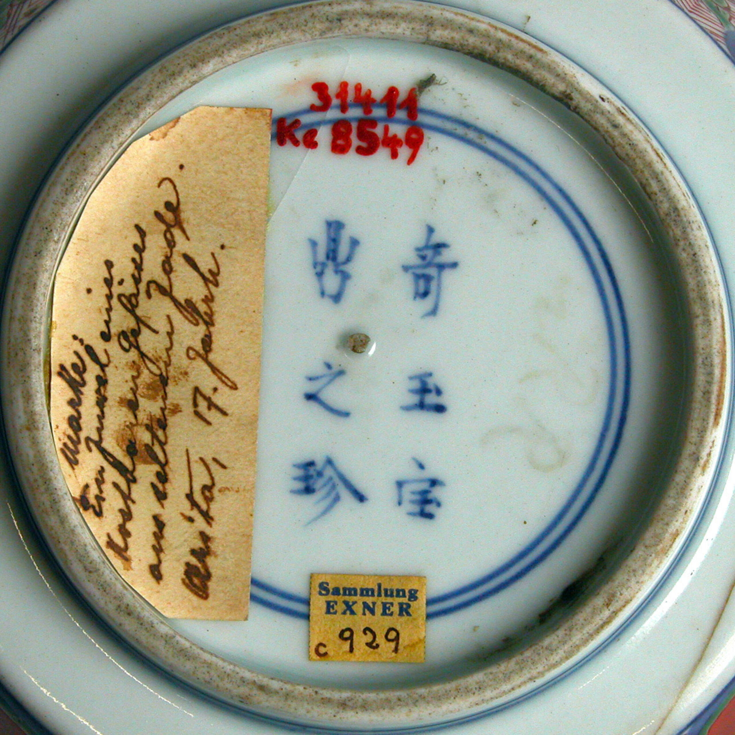 händisch auf Etikett: „Marke: Juwel eines kostbaren Gefässes aus seltenem Jade. Arita, 17. Jahrh."