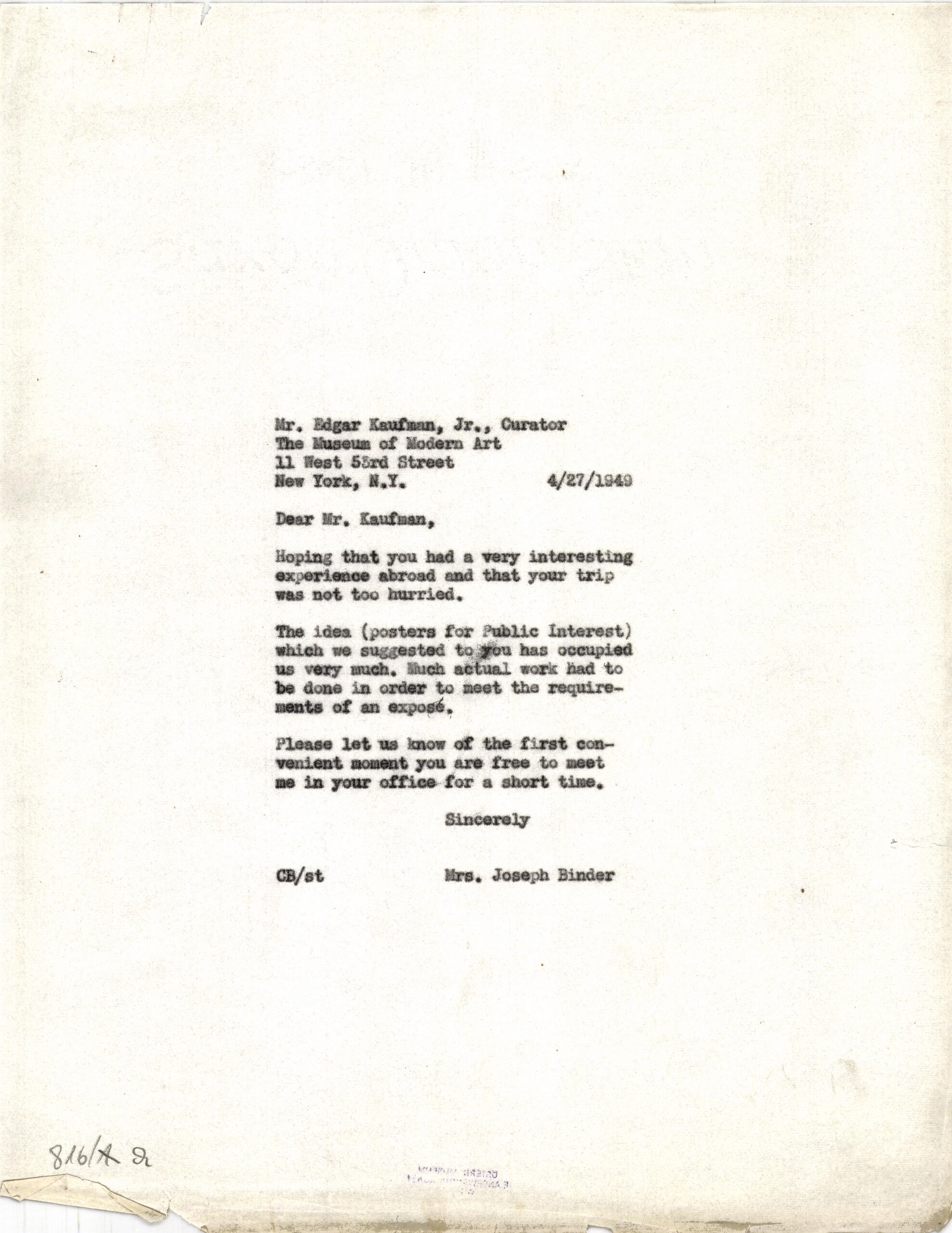 - Brief an das "The Museum of Modern Art" in New York (given title)