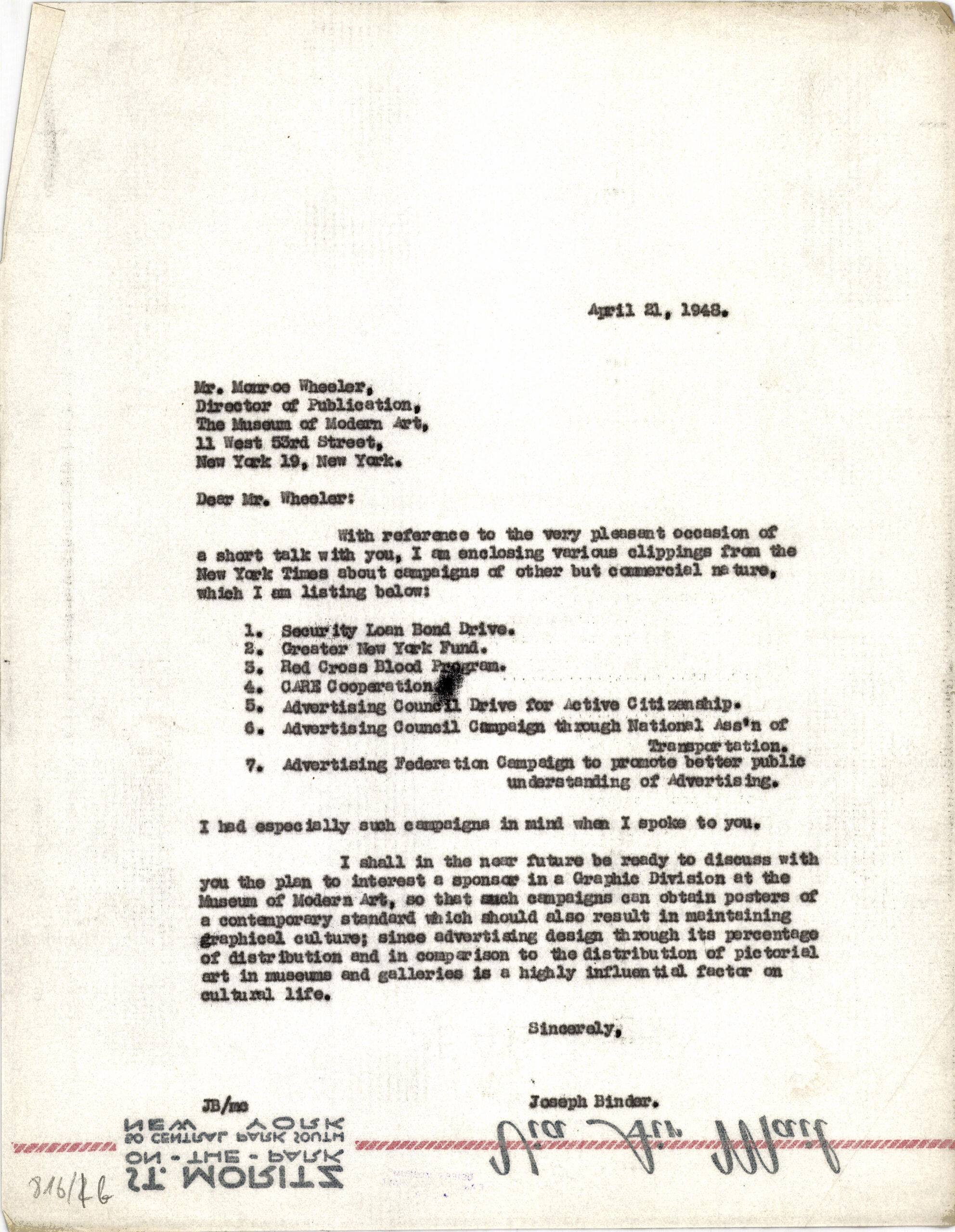 - sender: Joseph Binder, New York City, 1948