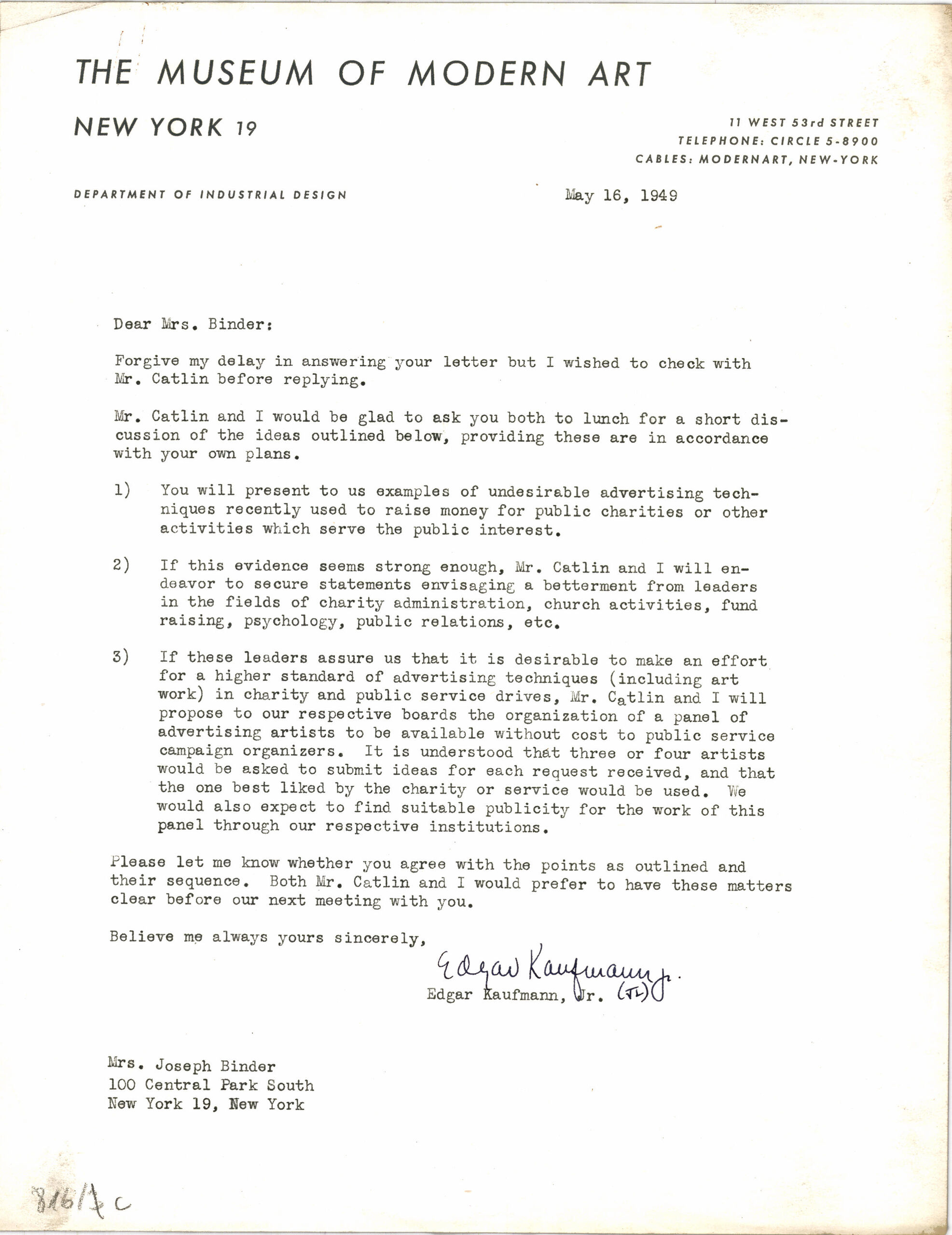 - Brief vom "The Museum of Modern Art" in New York (given title)