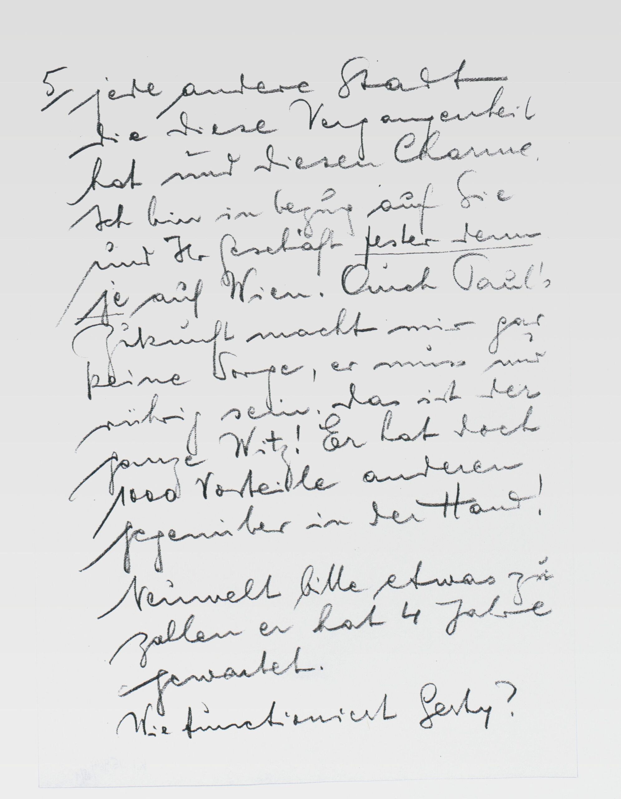- : ...jede andere Stadt die diese Vergangenheit hat und diesen Charme. Ich bin in Bezug auf Sie und Ihr Geschäft fester denn je auf Wien. Auch Paul’s Zukunft macht mir gar keine Sorge, er muss nur ruhig sein. Das ist der ganze Witz! Er hat doch 1000 Vorteile anderen gegenüber in der Hand! Neuwelt bitte etwas zuzahlen er hat 4 Jahre gewartet. Wie funktioniert Gerty? ...