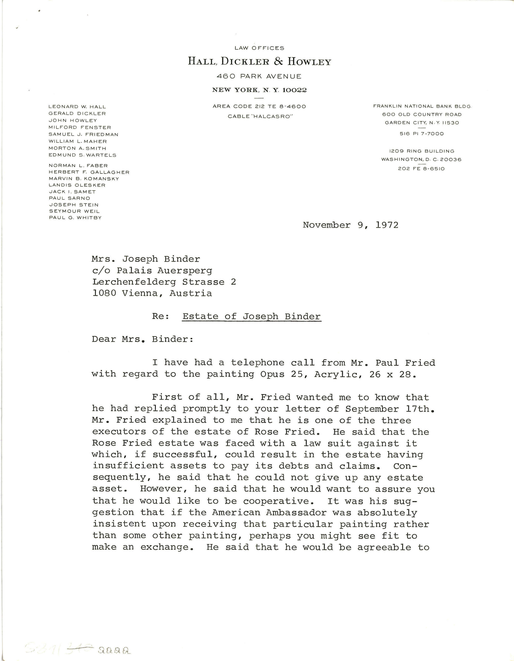 - Brief von "Hall, Dickler & Howley" (given title)