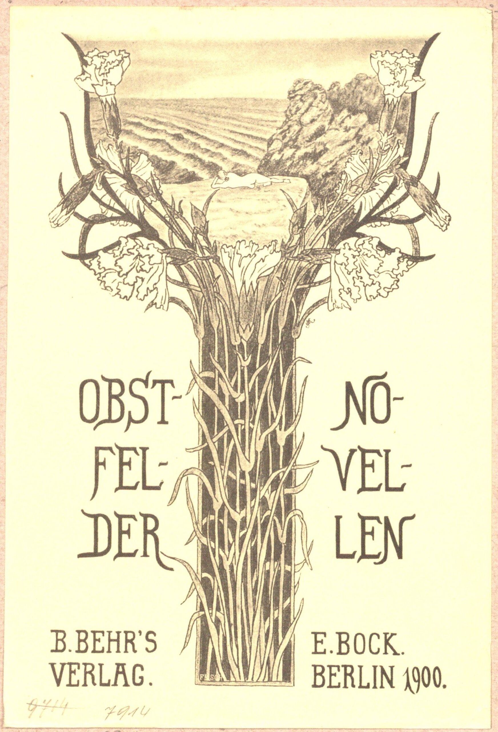 - text on object: OBST- / FEL- / DER; NO- / VEL- / LEN; B. BEHR'S / VERLAG.; E. BOCK. / BERLIN 1900. [gedruckter Text]