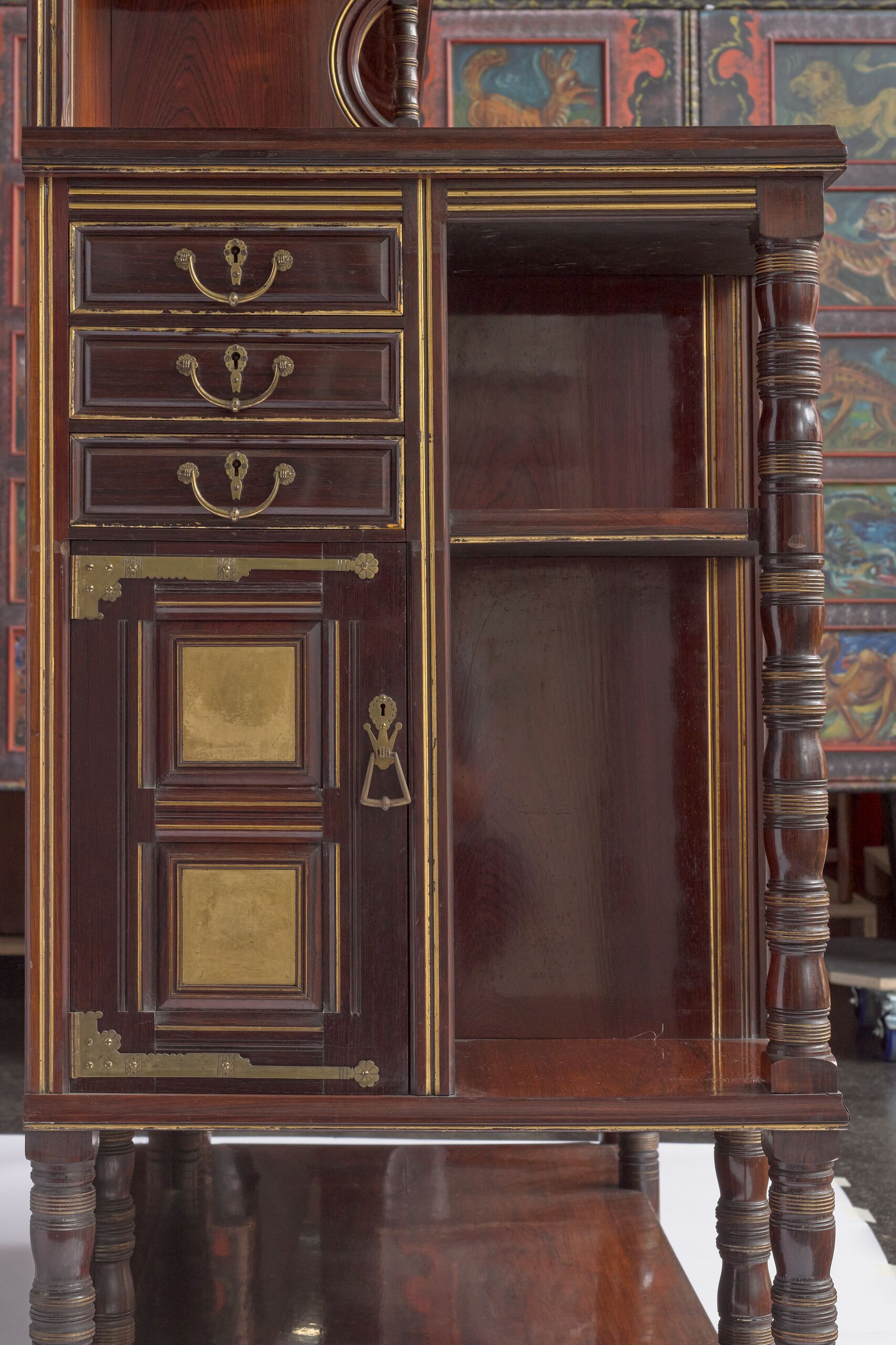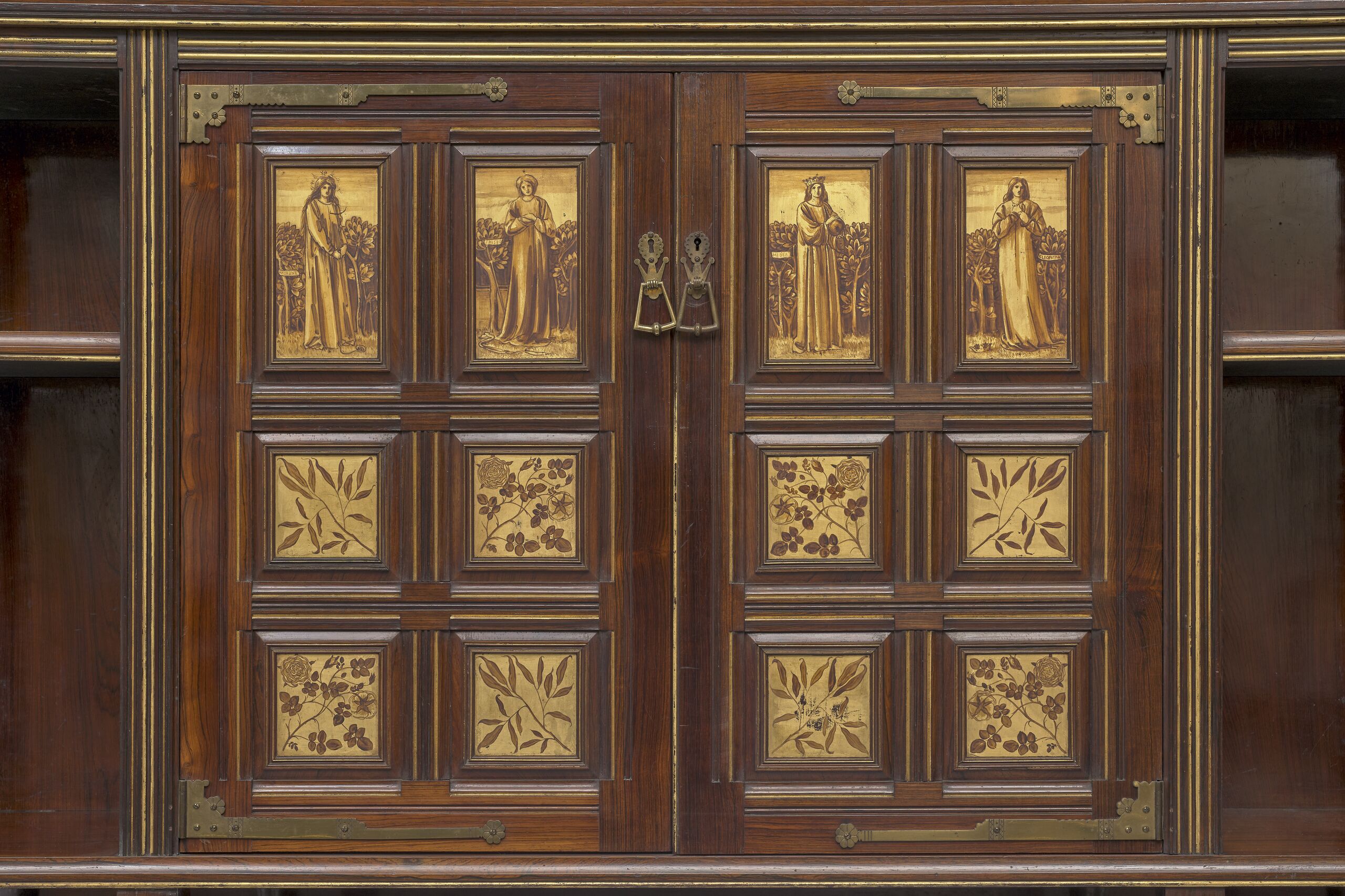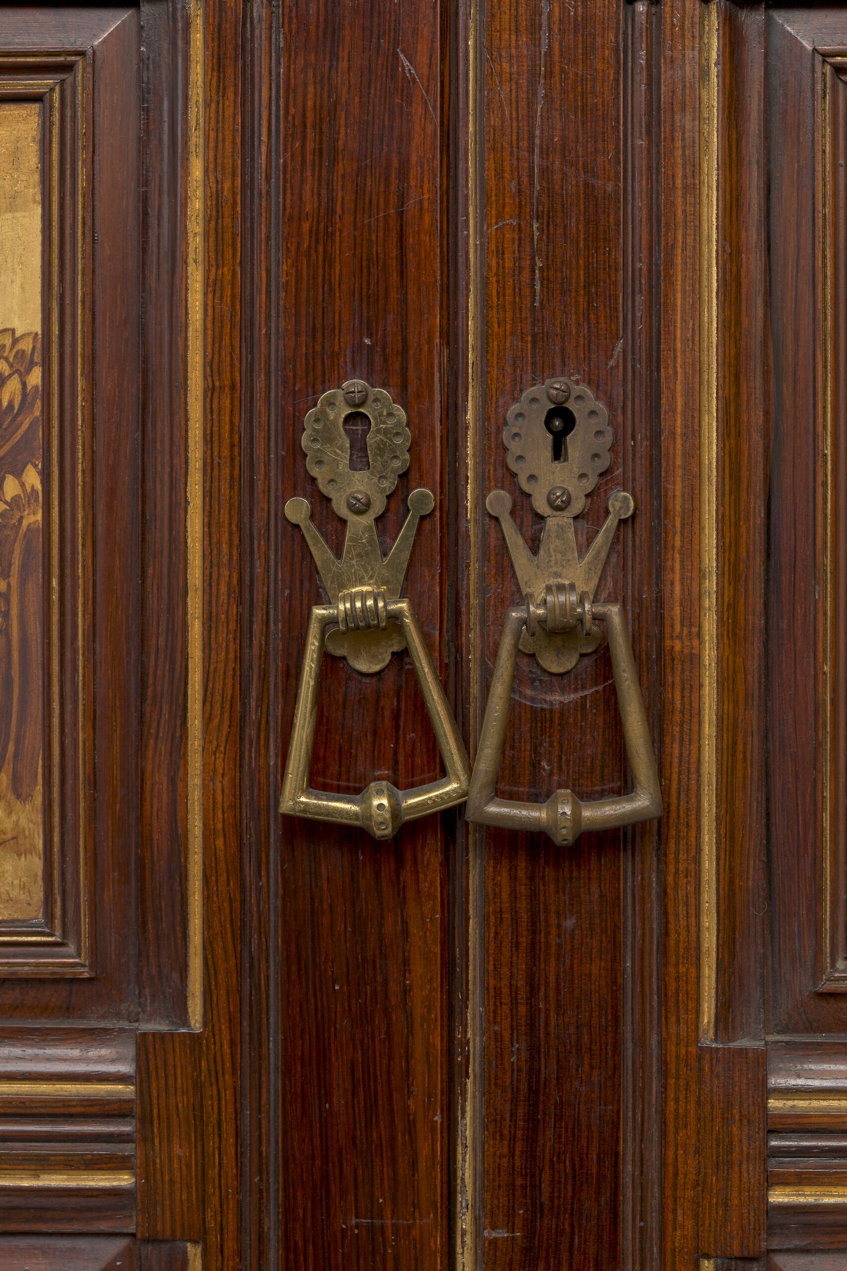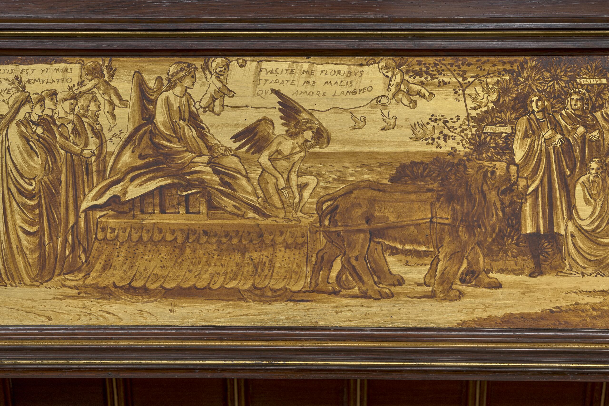Mahagoni- auf Weichholz furniert; Malerei auf Goldgrund