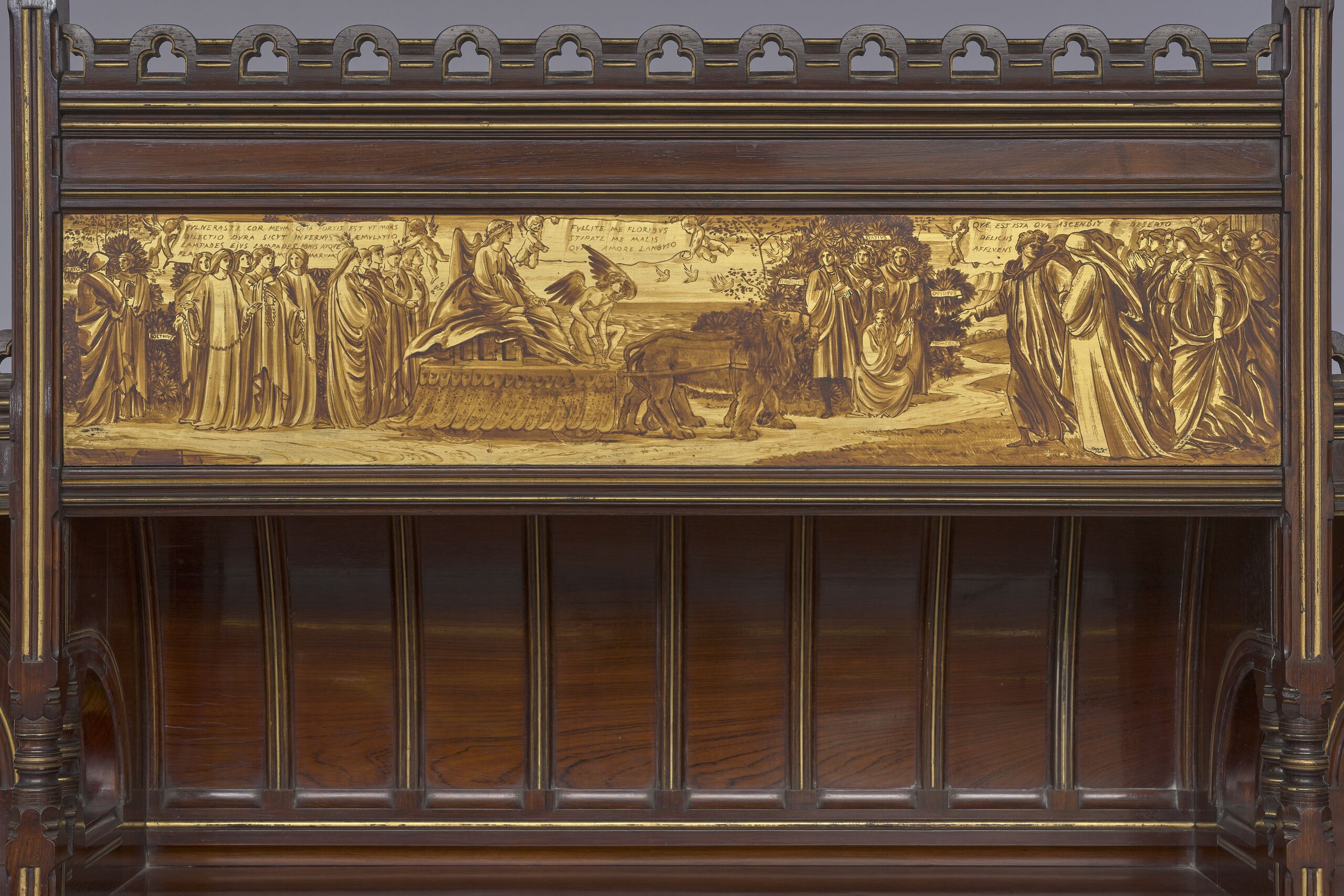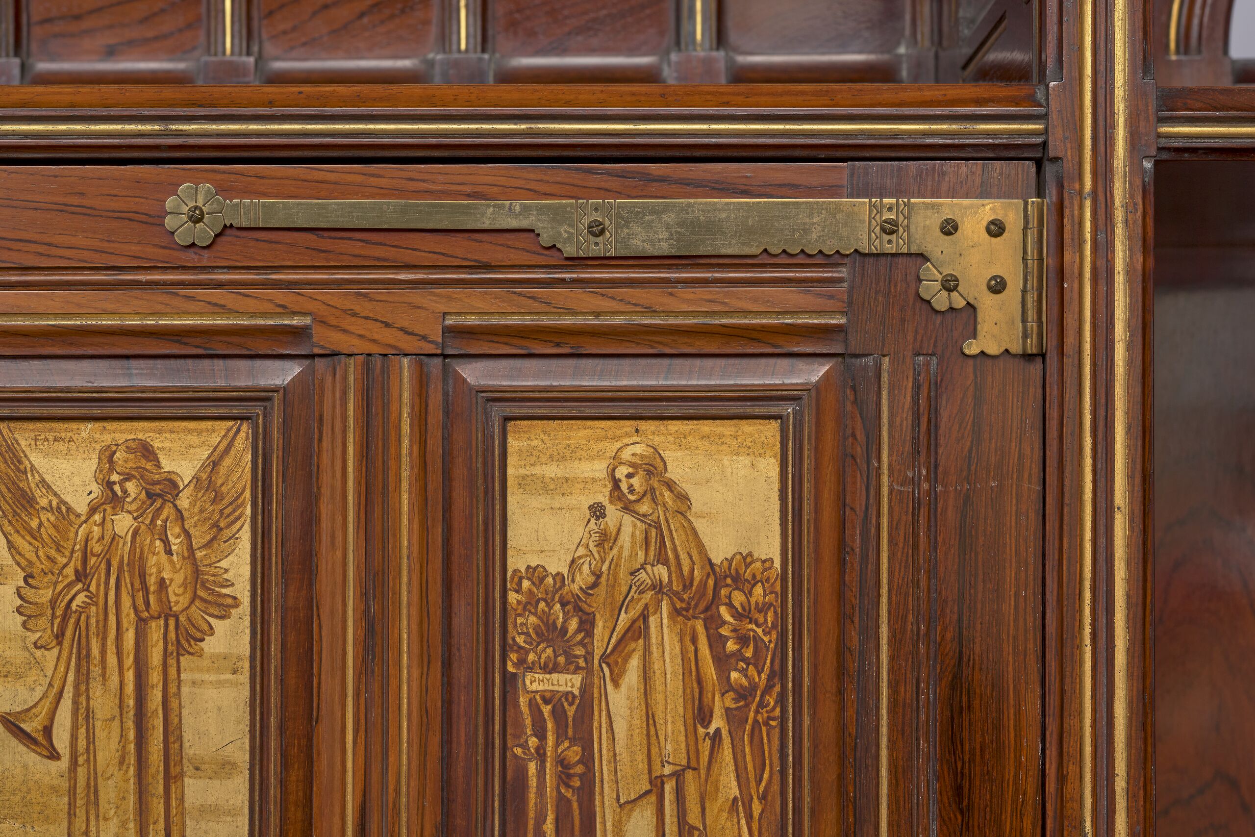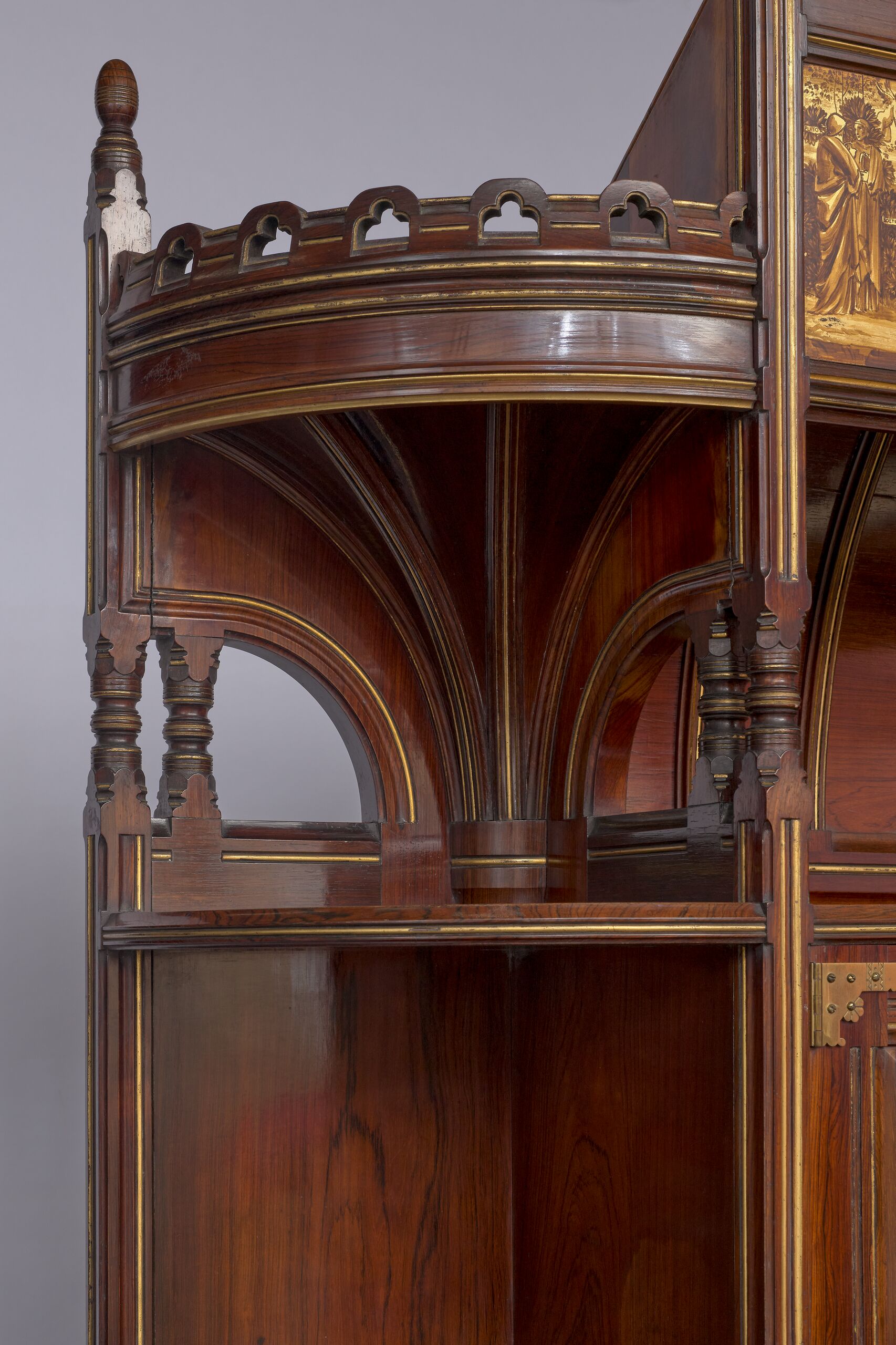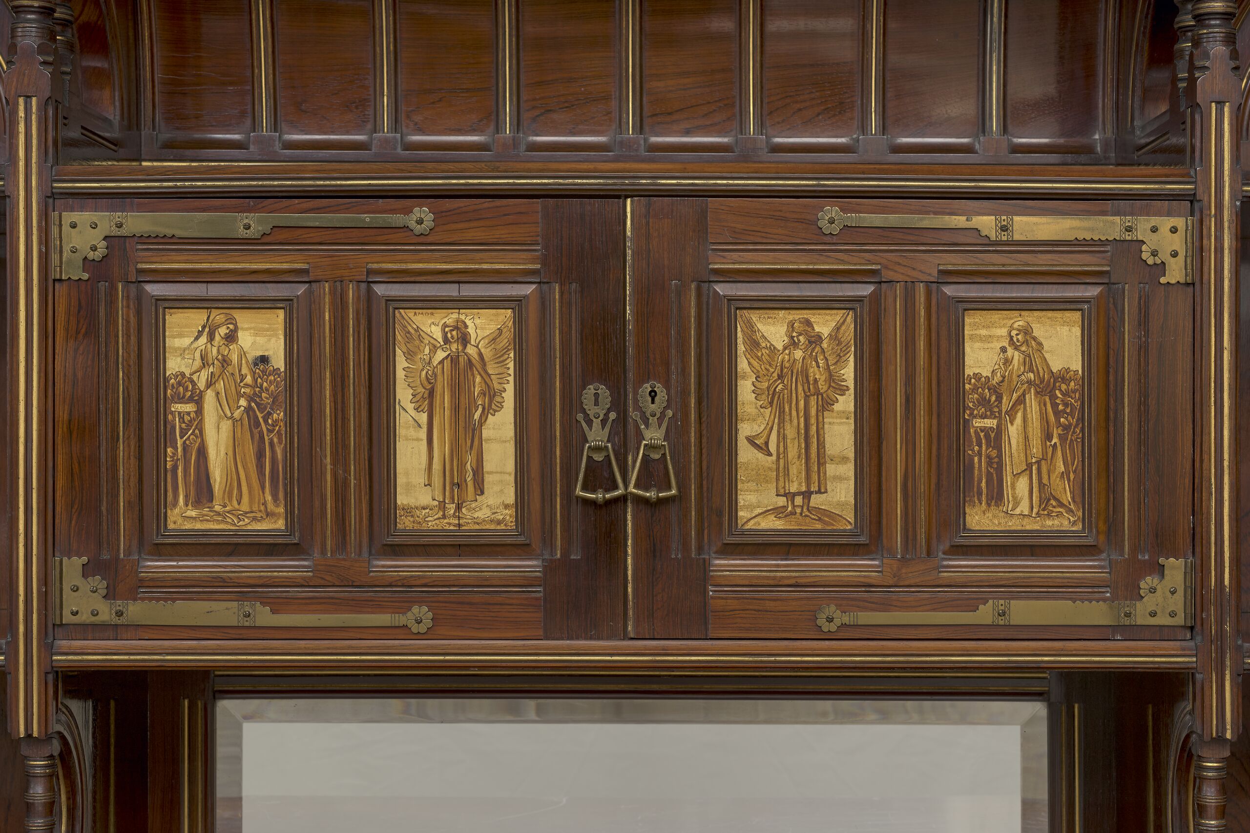 Mahagoni- auf Weichholz furniert; Malerei auf Goldgrund