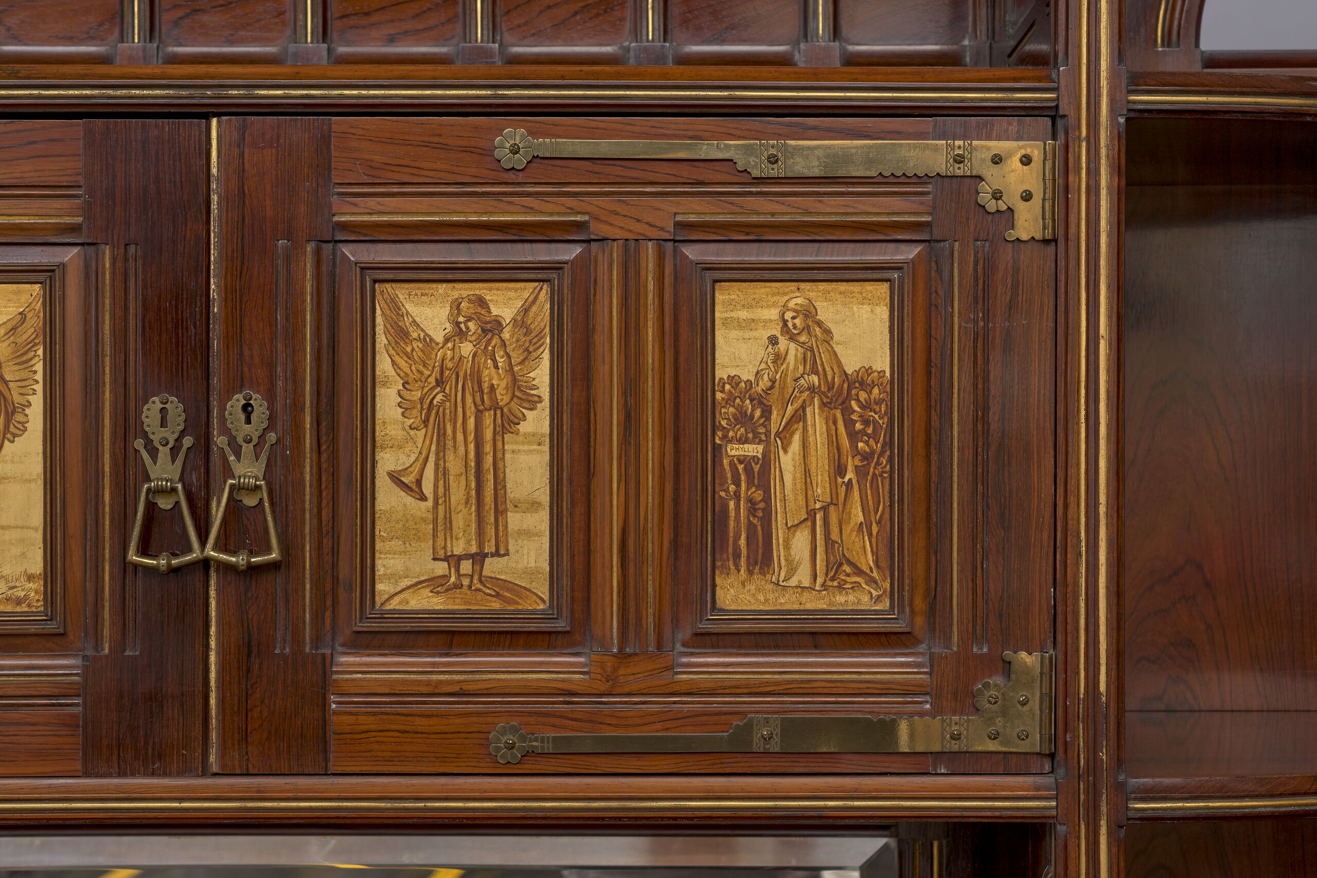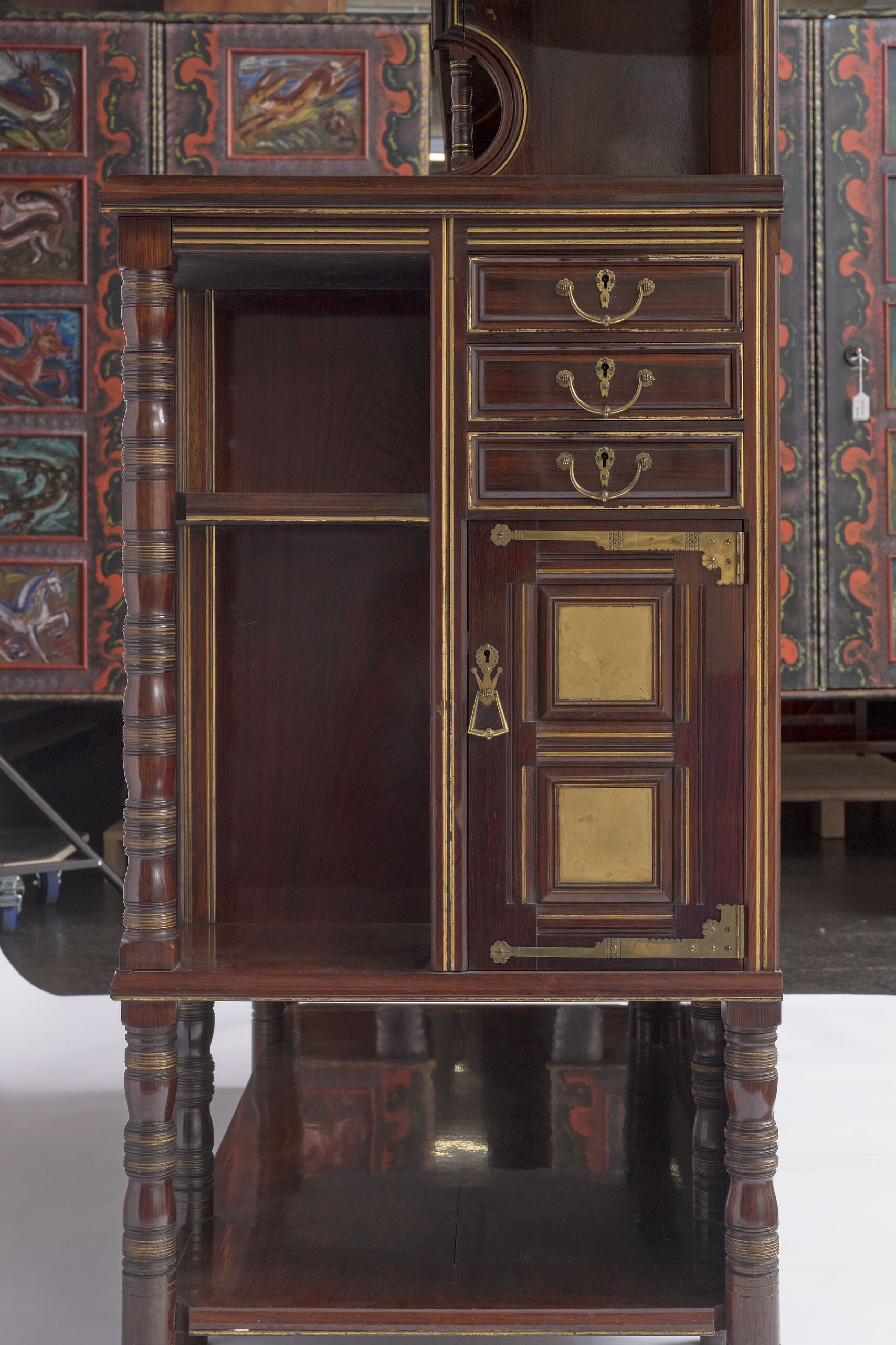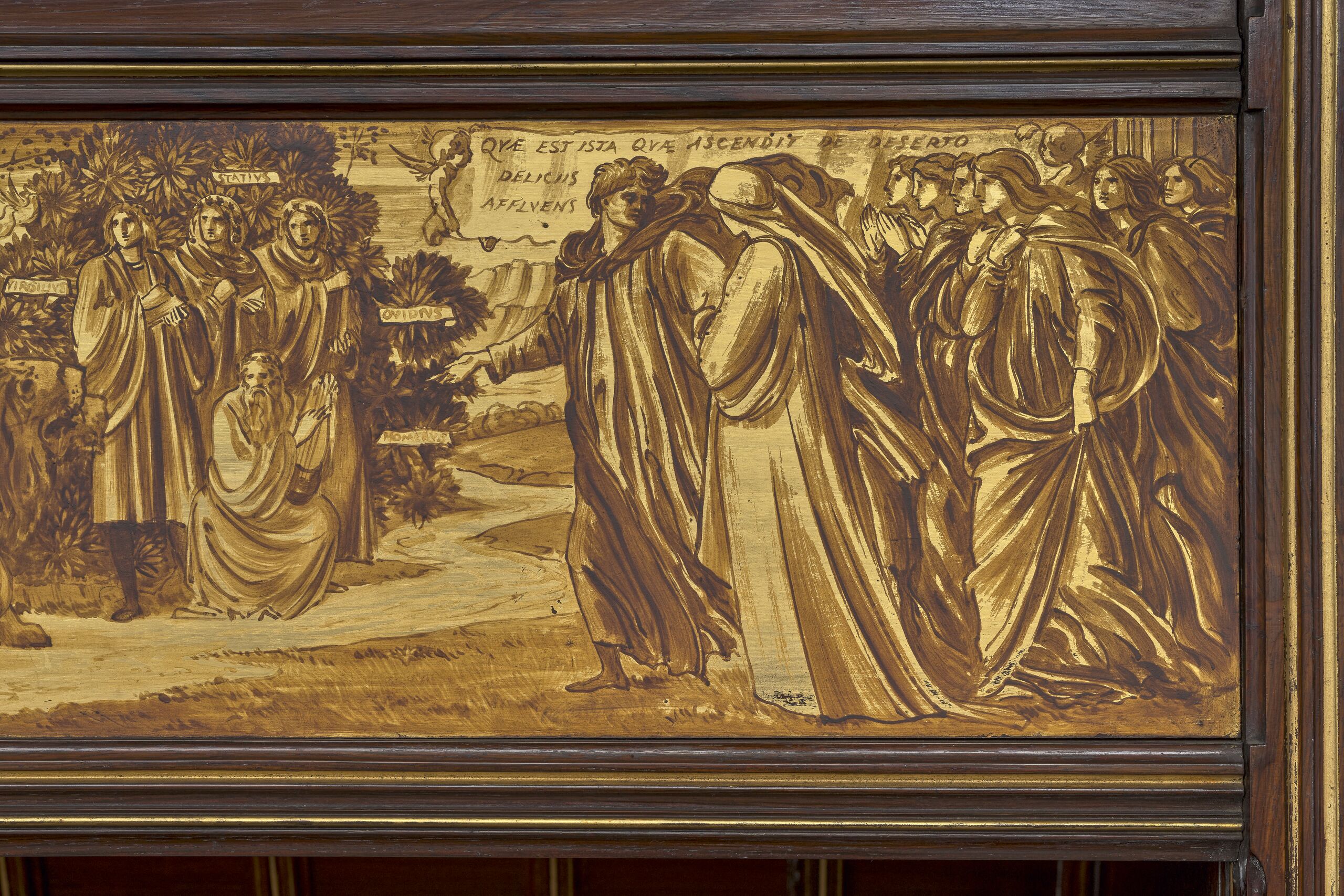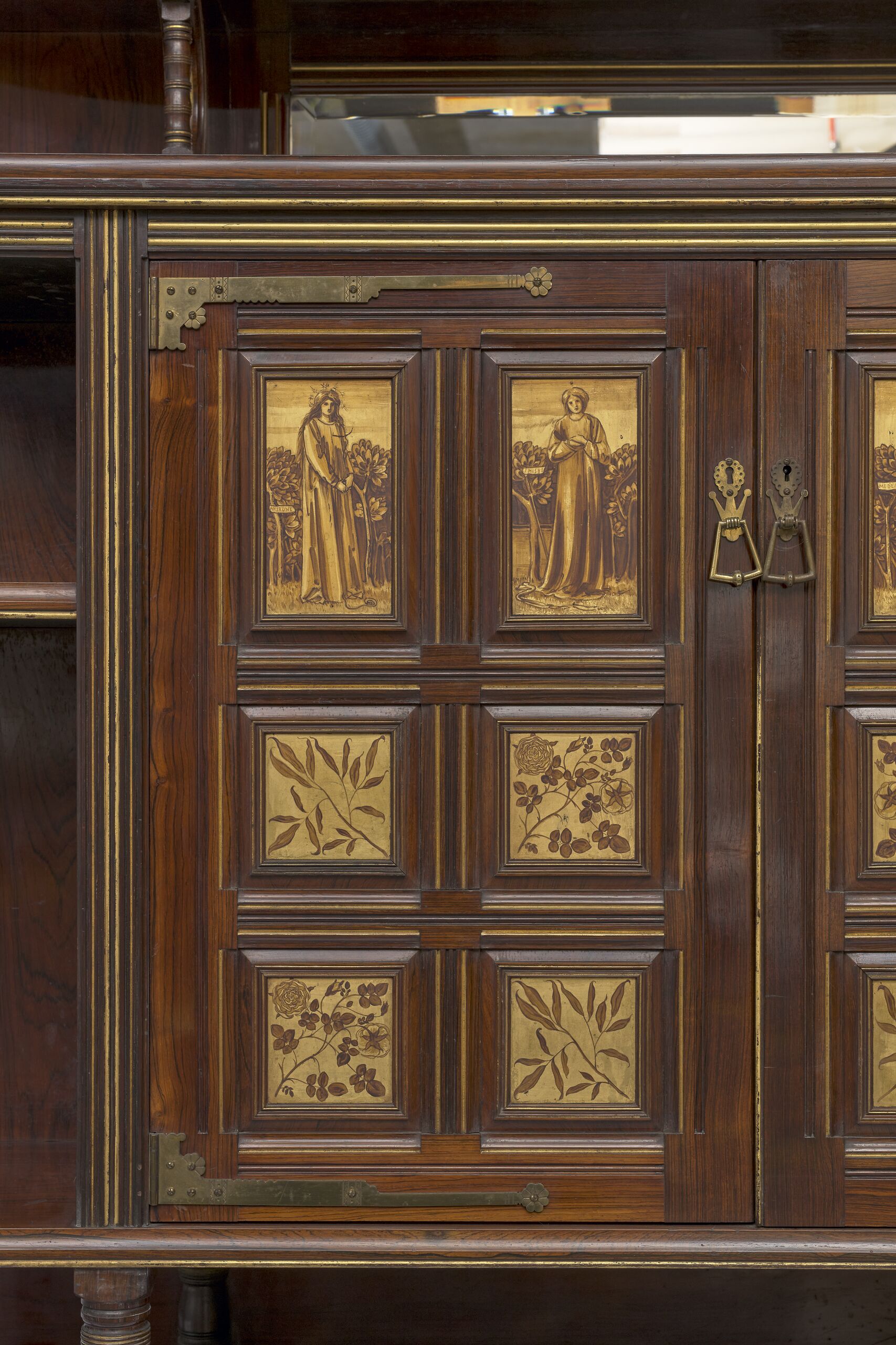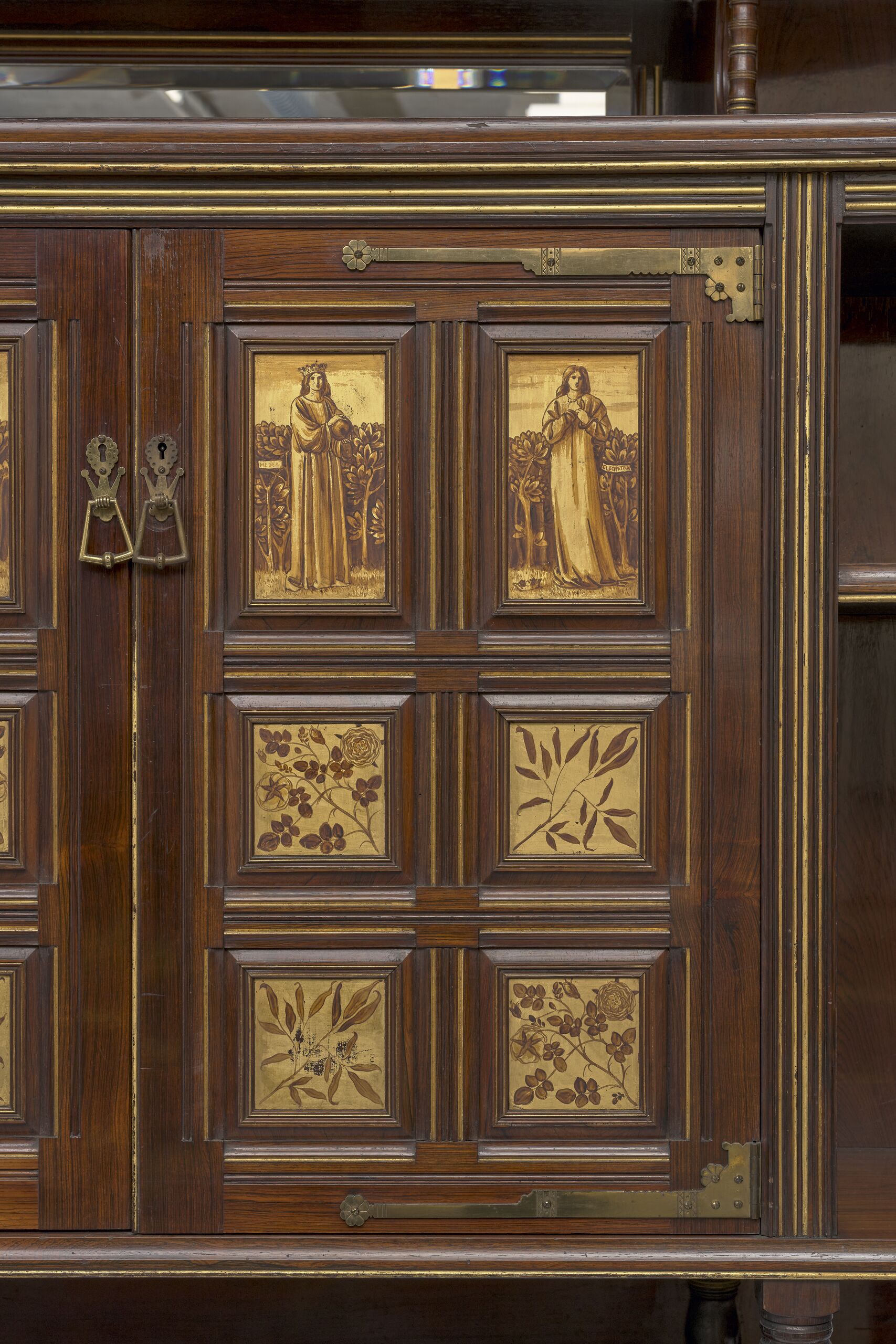 Mahagoni- auf Weichholz furniert; Malerei auf Goldgrund