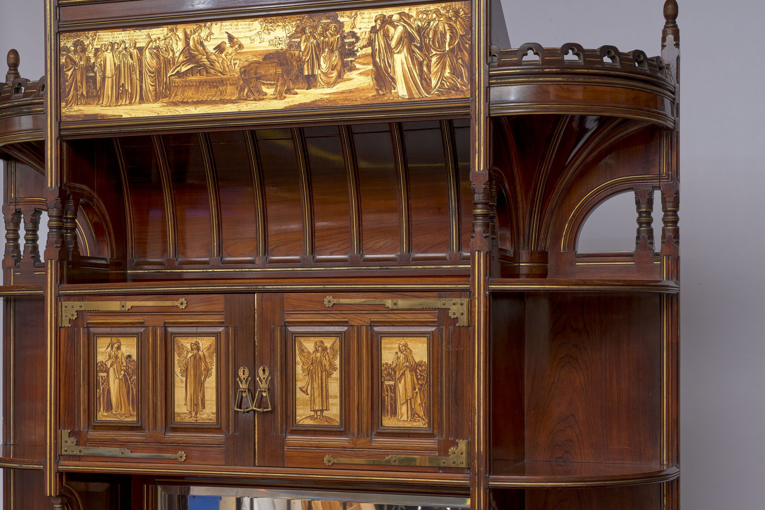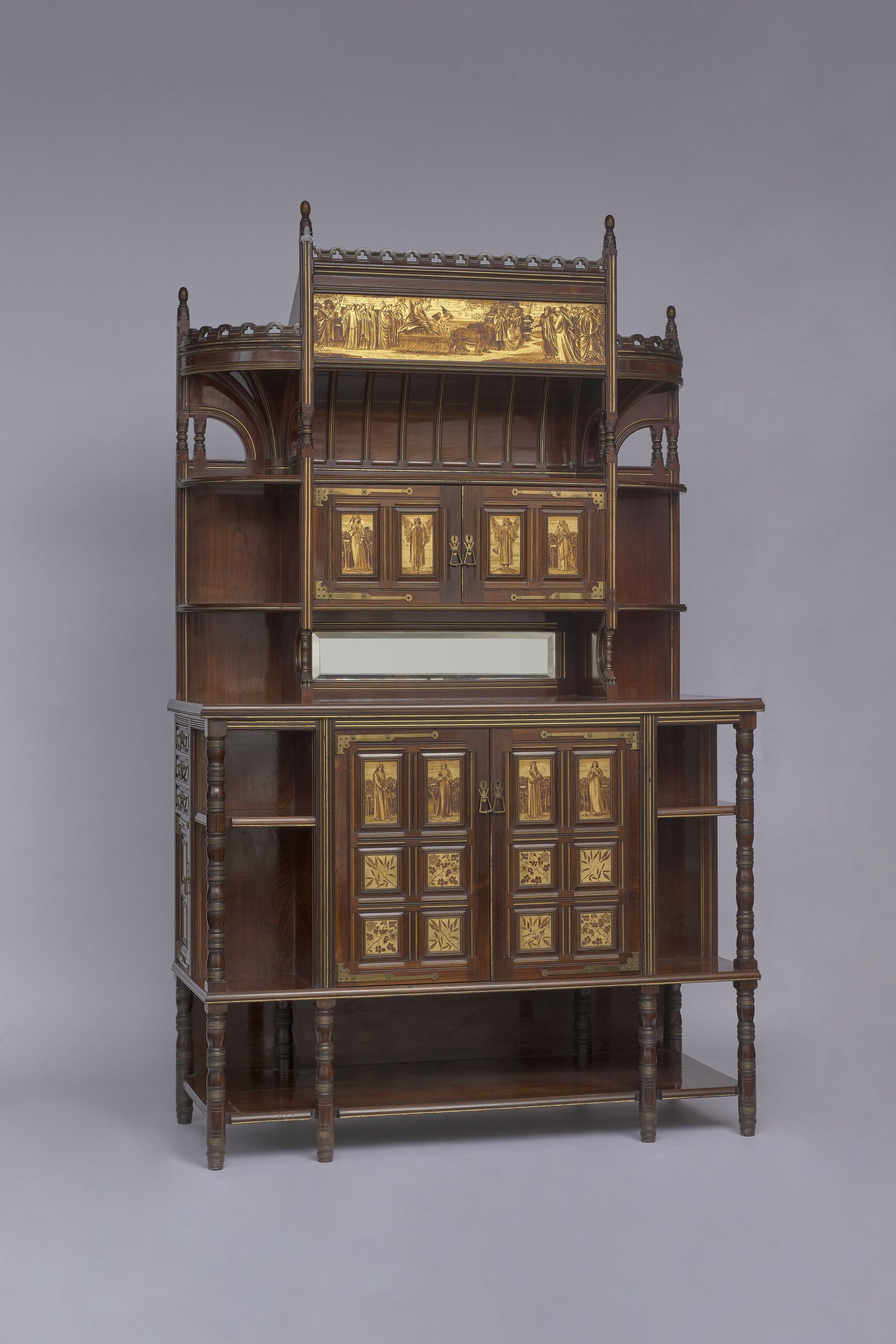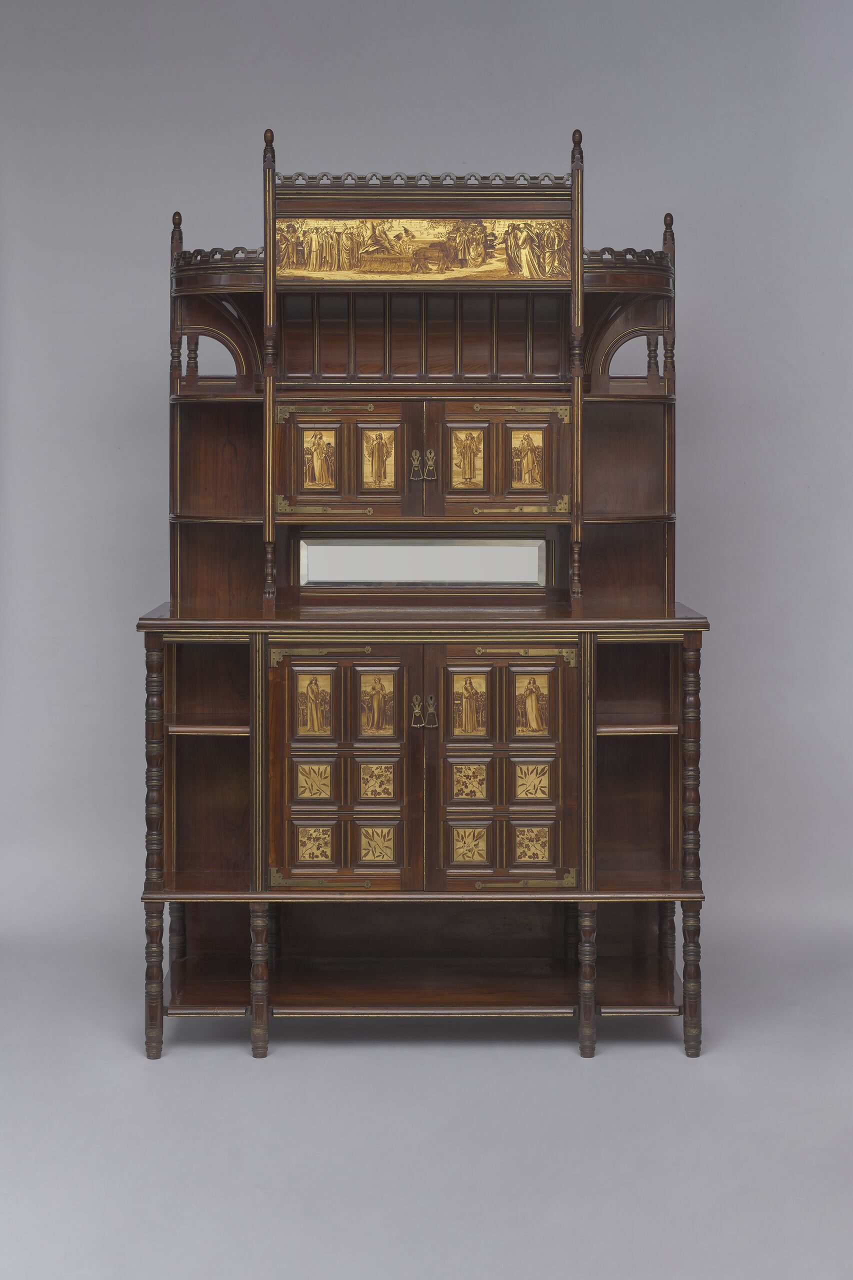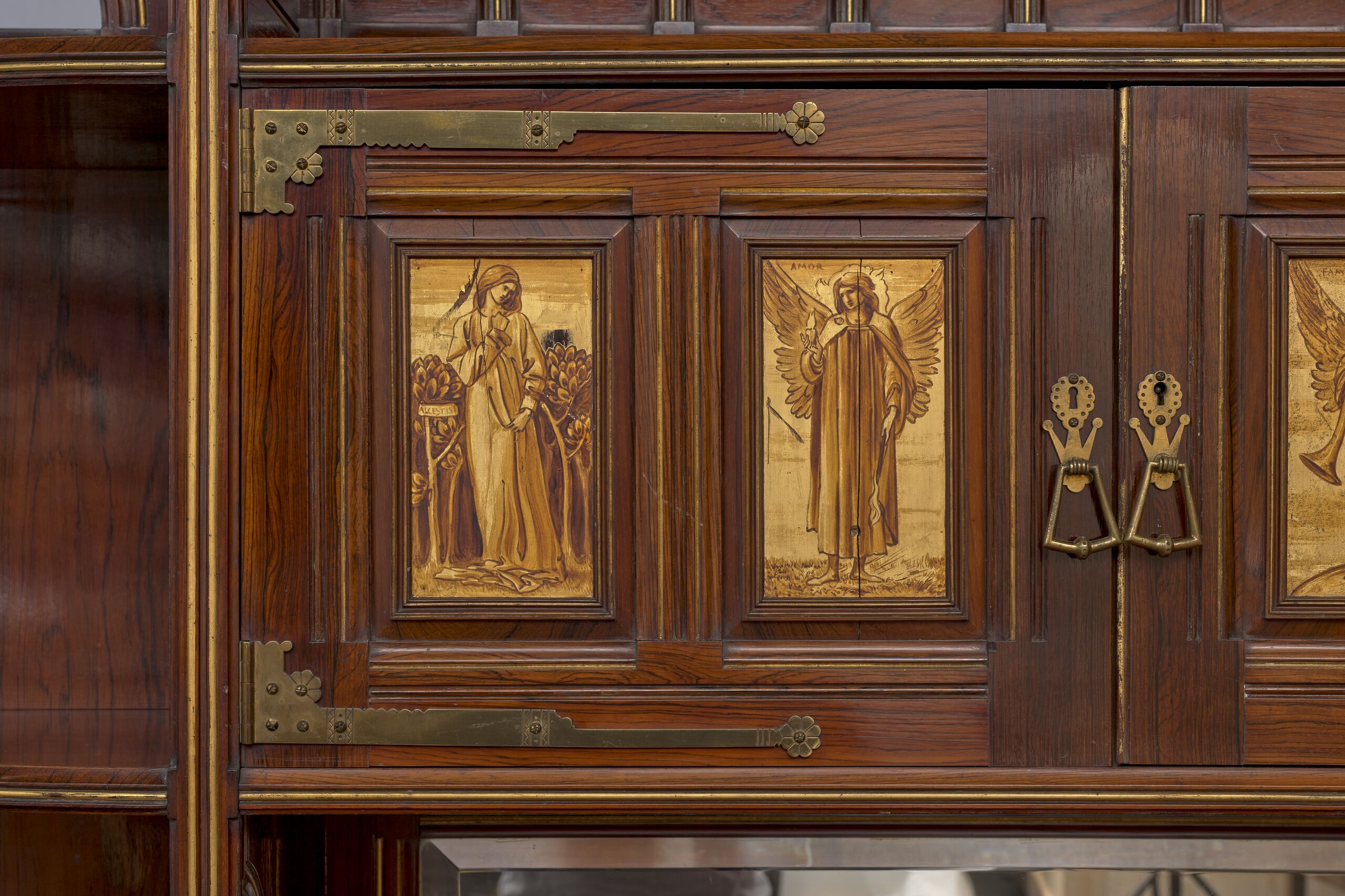 Mahagoni- auf Weichholz furniert; Malerei auf Goldgrund