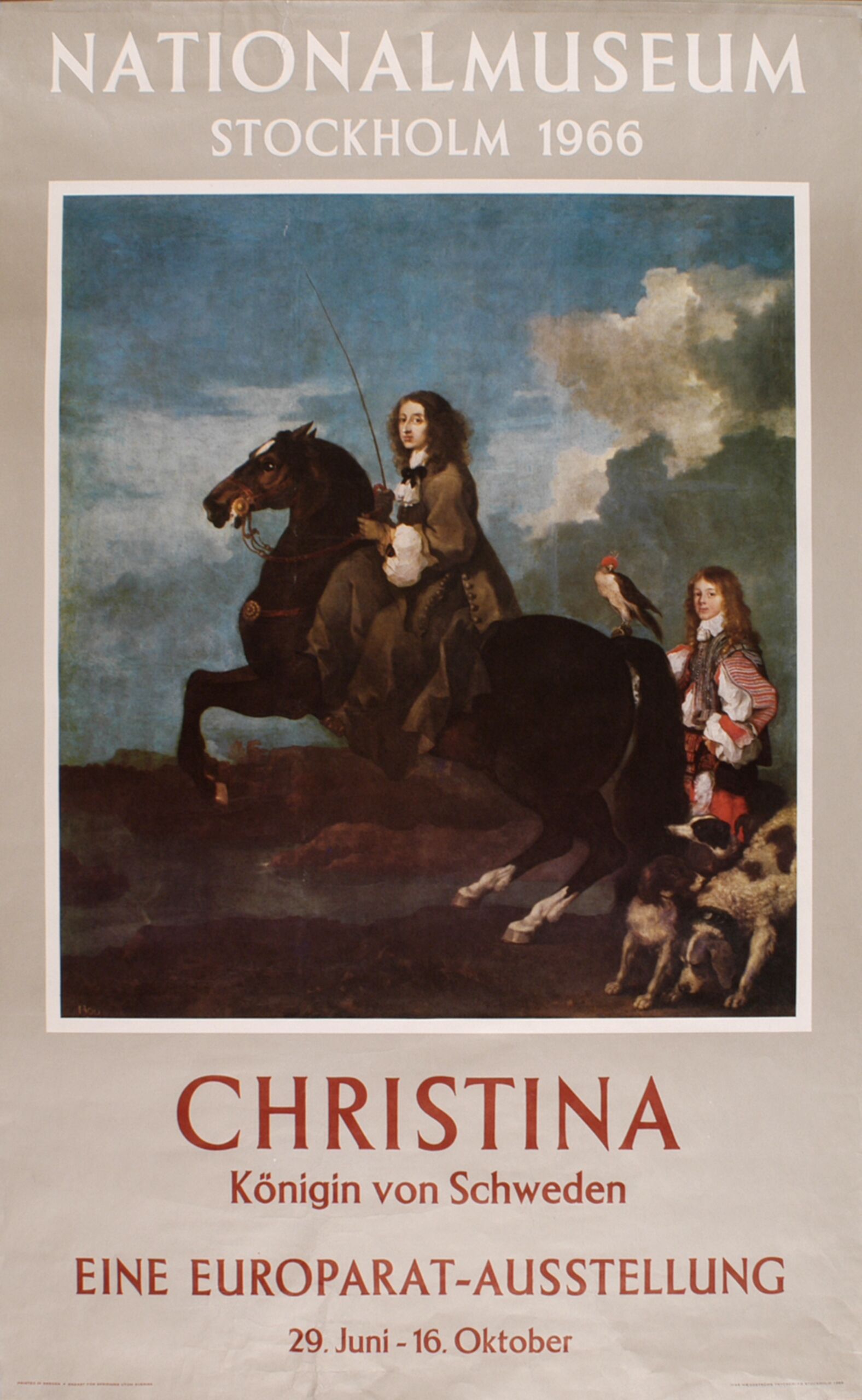 - text on object: Nationalmuseum Stockholm 1966. Christina Königin von Schweden. Eine Europarat - Ausstellung. 29. Juni - 16. Oktober