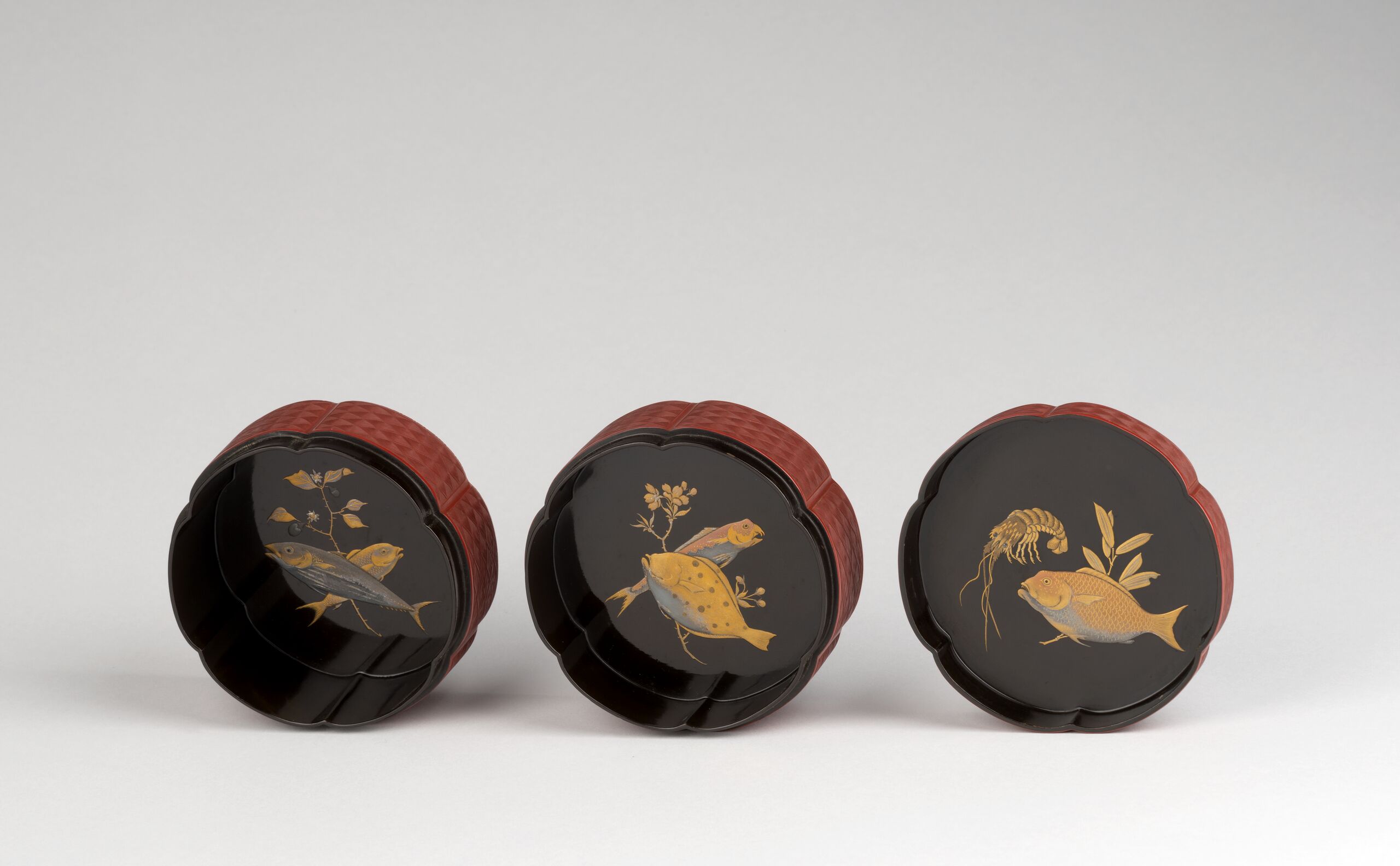 innen Schwarzlack mit Goldlackrelief und Perlmutteinlagen