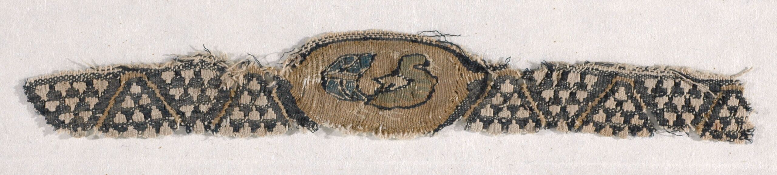 woven textile fragment, Decorative band (Clavus) with stylized bird and zigzag pattern, Anonym, MAK Inv.nr. T 321