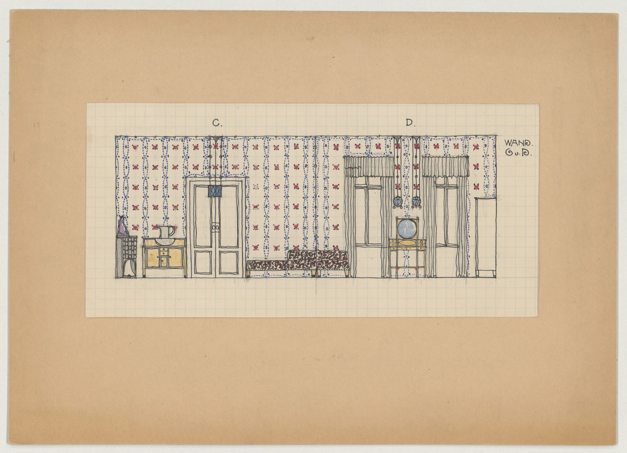 - Design for the furnishings of a man’s bedroom for the emperor’s jubilee furniture exhibition in 1908 (walls C and D) (given title)
