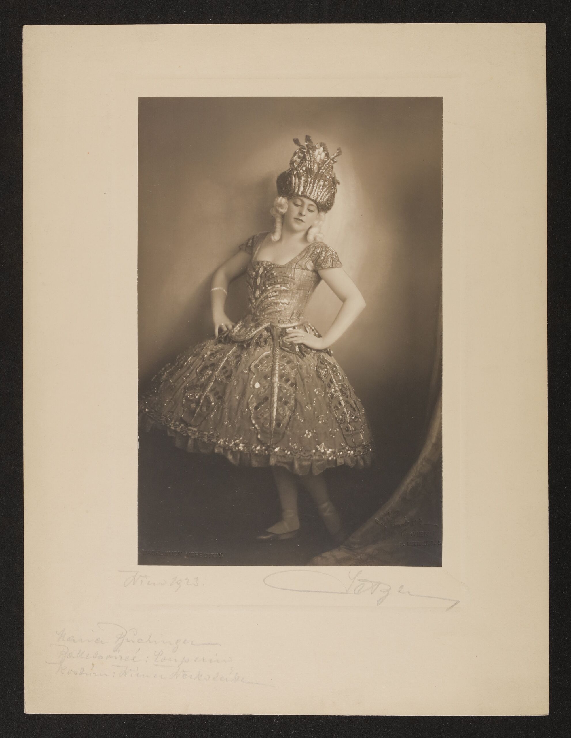 - Die Tänzerin Maria Buchinger in einem Kostüm der Wiener Werkstätte für eine Balletsoirée der Wiener Staatsoper 1923