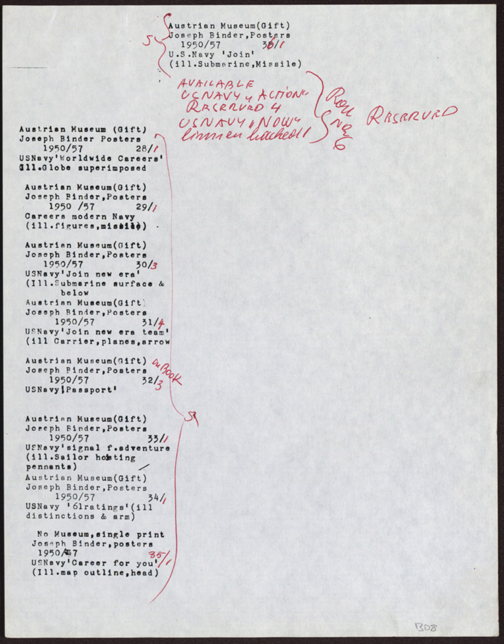 - diverse Listen von Werken Joseph Binders (given title)