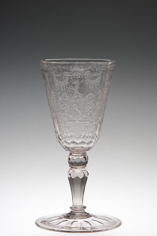 farblos, radierte Goldfolie. Zwei Medaillons mit Chronogrammen. die die Jahreszahl 1728 ergeben. Widmungsgeschenk unter zwei Brüdern Scholz, der eine Jesuit, der andere Postmeister von Glatz in Schlesien. Als Begleitdekor daher Erzengel Michael und Postmeister zu Ross