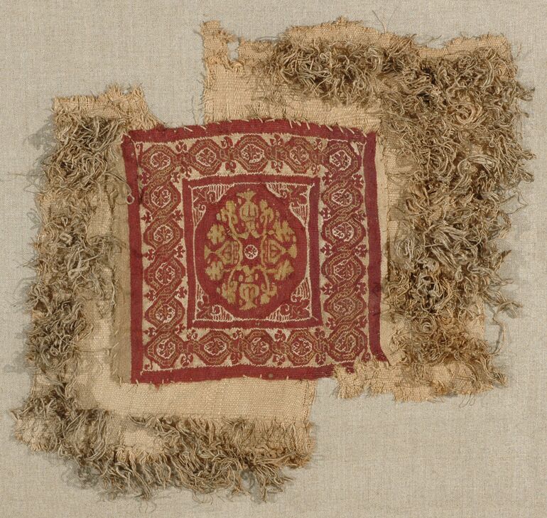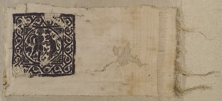 sleeve, Double band with biblical scenes from the Legend of Joseph with cloisonné-type framing, Anonym, MAK Inv.nr. T 691