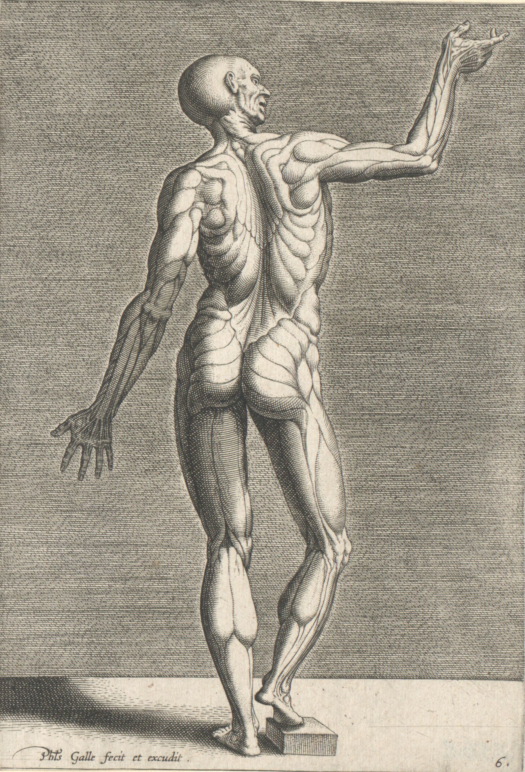 - Écorché, von hinten gesehen, Blatt 6 aus der Folge „Instruction et Fondaments de Bien Pourtraire“, herausgegeben von P. Galle (given title)