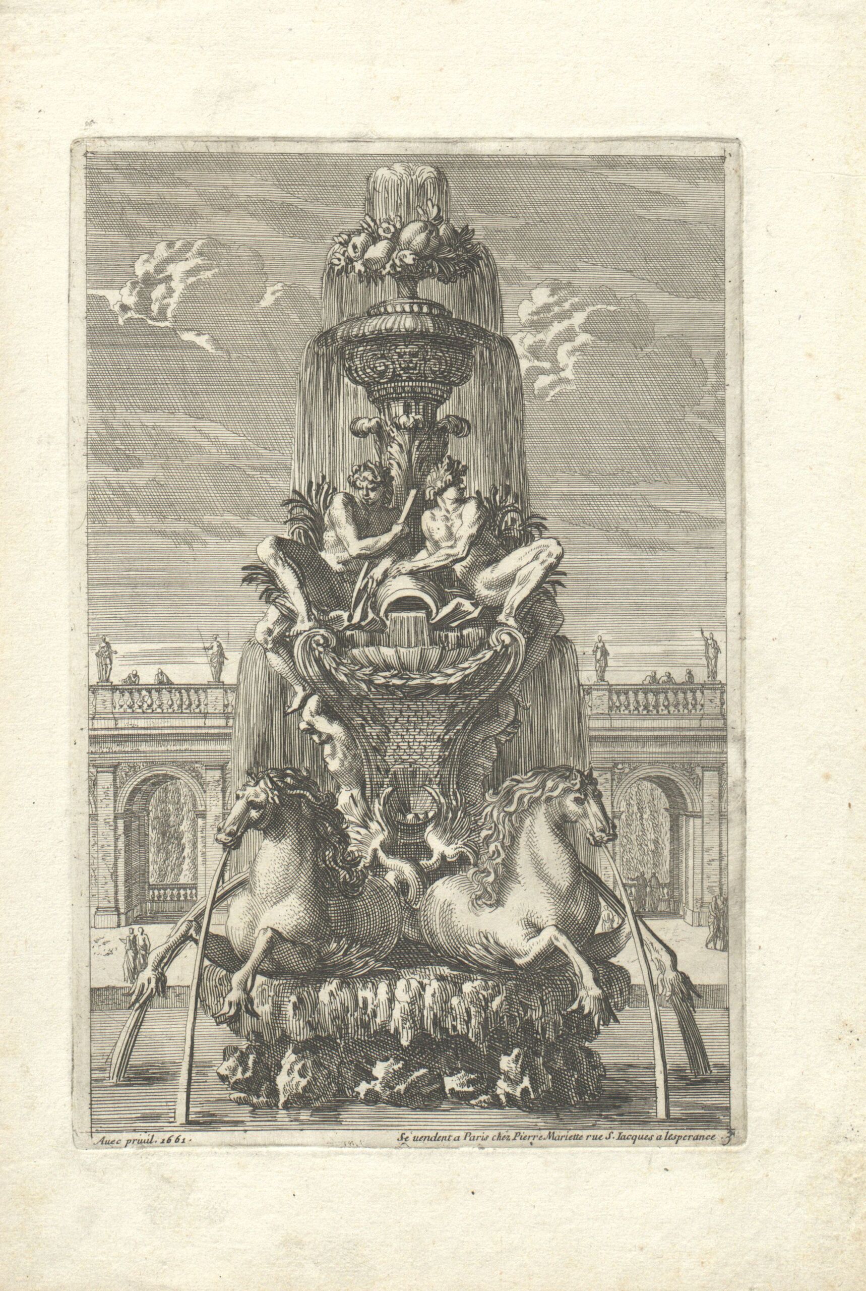 - Ein Brunnen, Blatt 3 mit Titel aus der Folge „Fontaines ou Jets d‘ Eau à l‘ jtalienne“, herausgegeben von P. Mariette (given title)