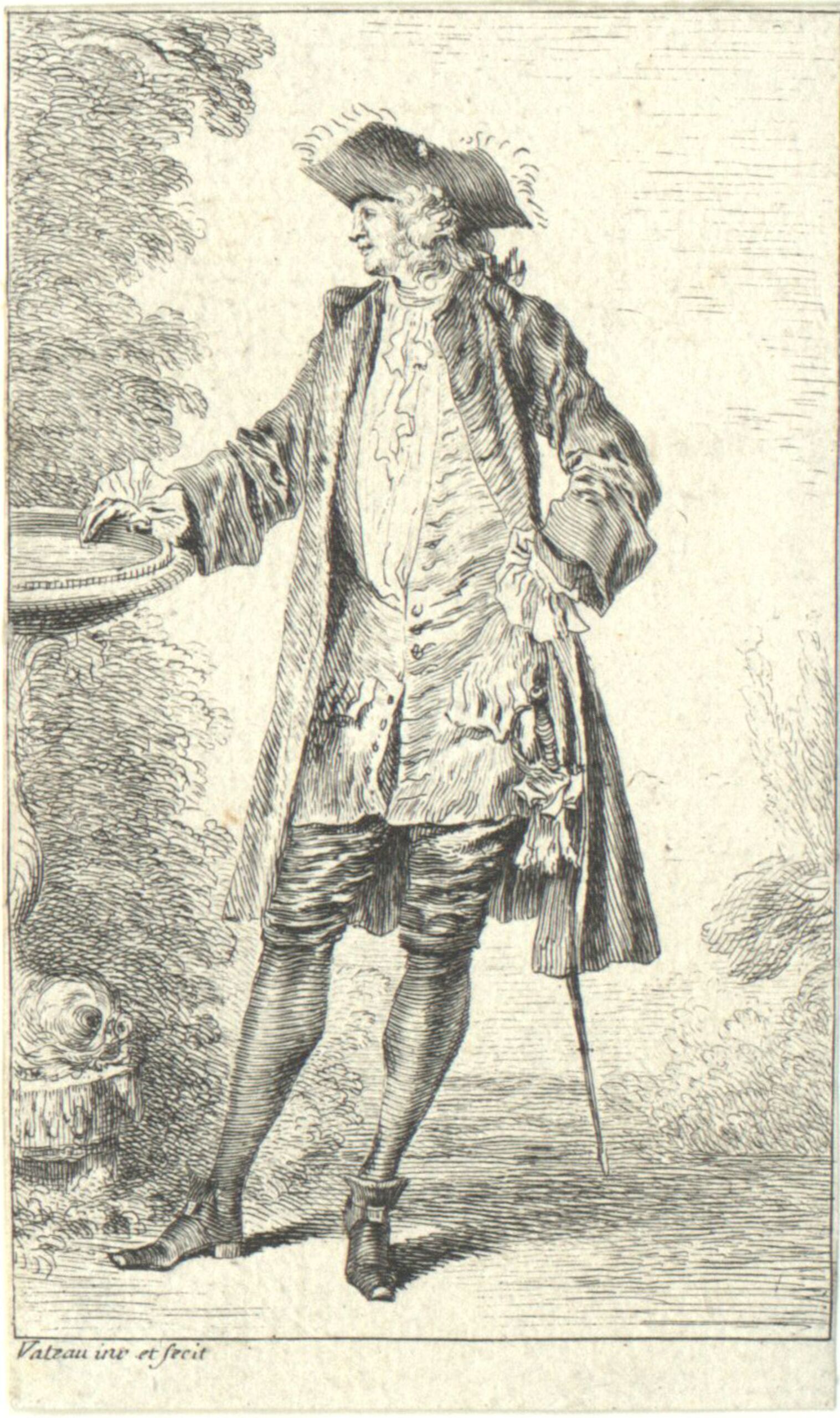 - Ein Herr neben einem Brunnen stehend, Blatt aus der Folge „Figures de Modes“, (Robert Dumesnil Nr. 3) (given title)