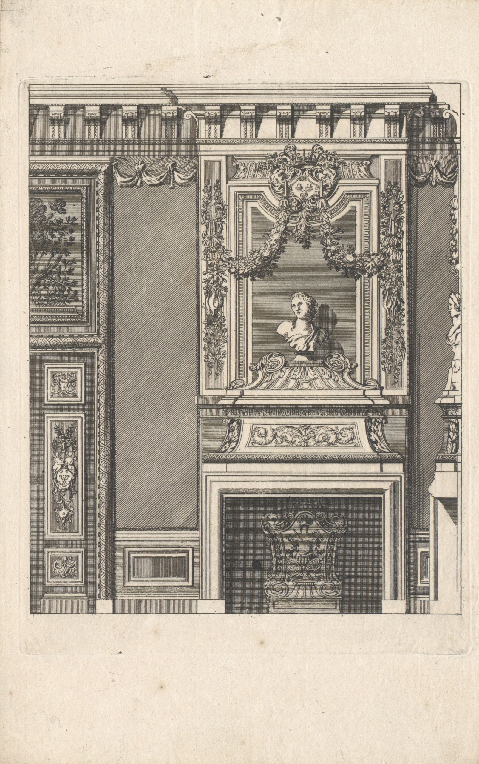 interior view, Ein Kamin, Blatt aus der Folge „Nouveaux Lievre de Cheminées a la Hollandoise, invente par D. Marot Architecte”, Daniel Marot, MAK Inv.nr. KI 2267-11