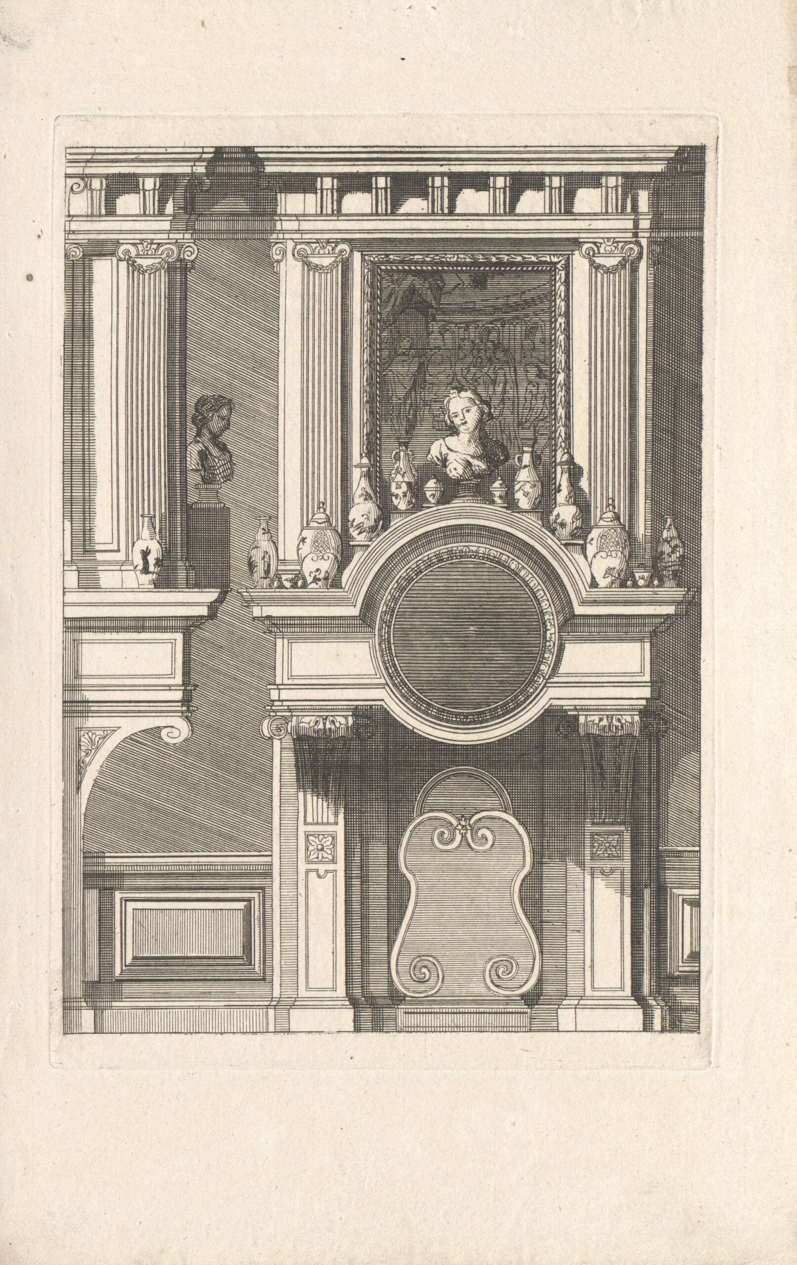 interior view, Ein Kamin, Blatt aus der Folge „Nouveaux Lievre de Cheminées a la Hollandoise, invente par D. Marot Architecte”, Daniel Marot, MAK Inv.nr. KI 2267-12