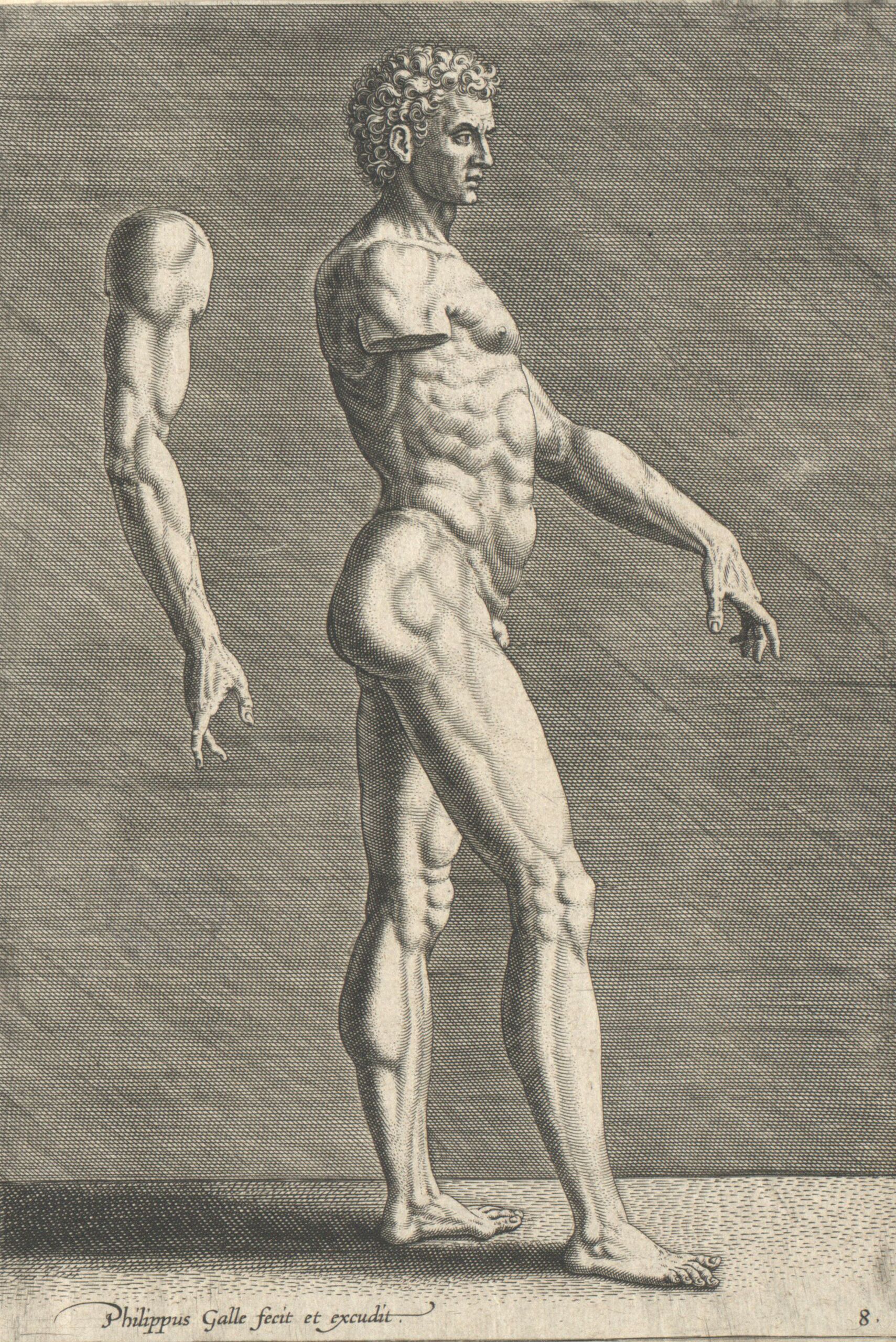 - Ein nackter Mann, im Profil gesehen, Blatt 8 aus der Folge „Instruction et Fondaments de Bien Pourtraire“, herausgegeben von P. Galle (given title)