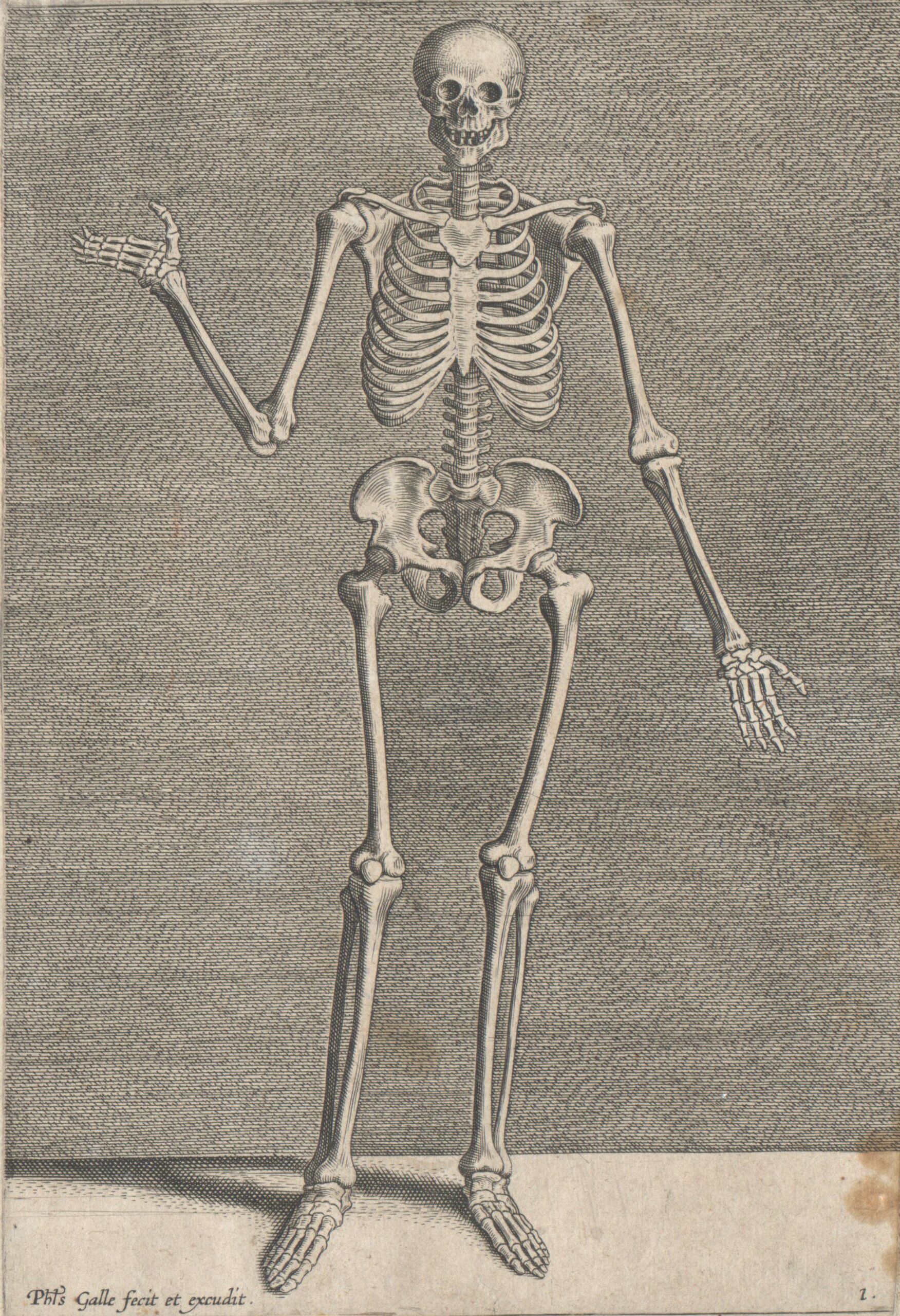 - Ein Skelett, frontal gesehen, Blatt 1 aus der Folge „Instruction et Fondaments de Bien Pourtraire“, herausgegeben von P. Galle (given title)