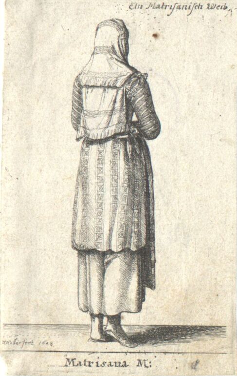 - text on object: Ein Burgers oder khauffmans Fraw zu Antorff / Civis aut Mercatoris Antverpiensis Uxor / W Hollar fecit 1650