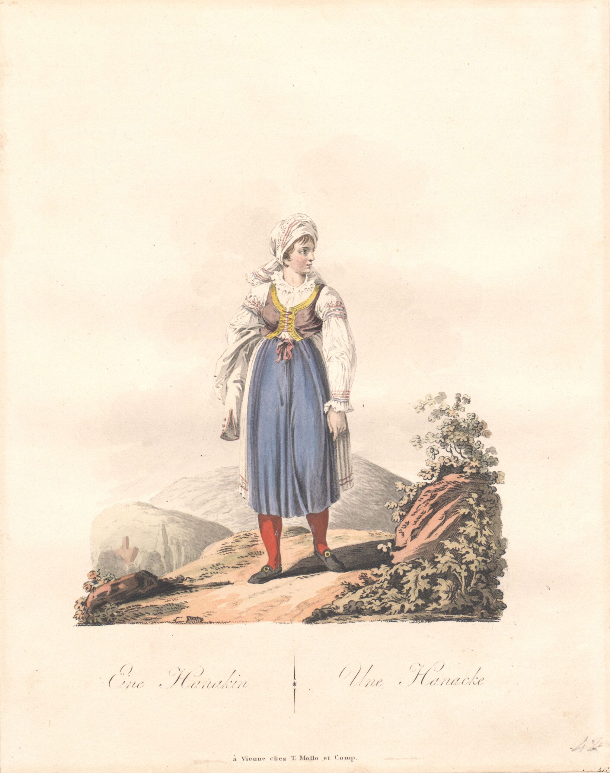 - „Eine Hanakin“, Blatt aus der Folge der Volkstrachten aus der österreichischen Monarchie, herausgegeben von T. Mollo et Comp. (given title)